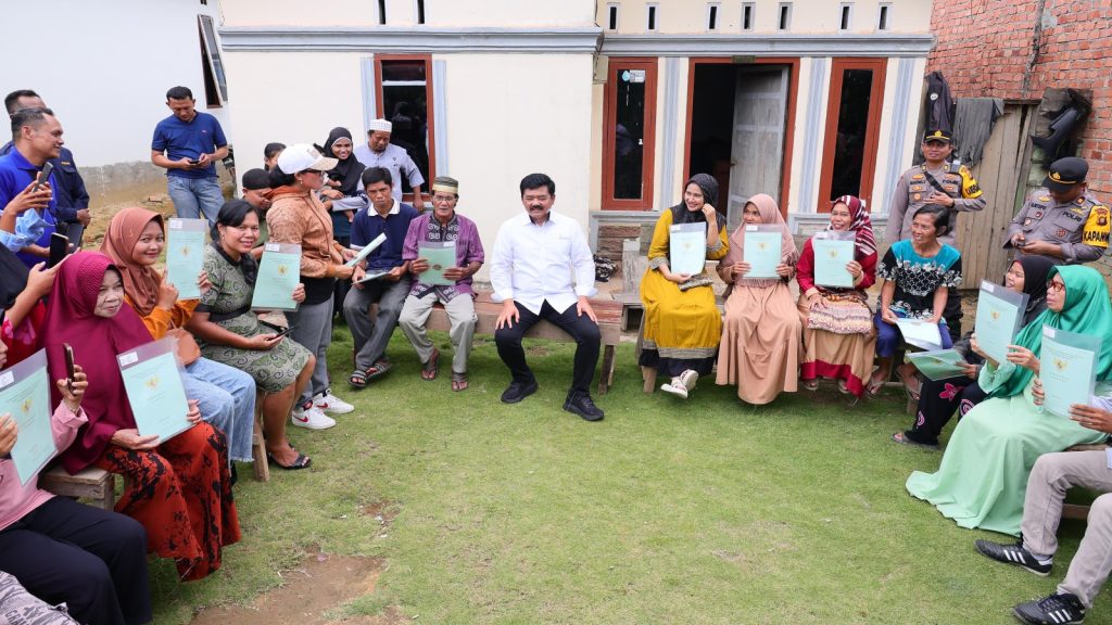 DelikAsia.com, (Muaro Jambi) | Menteri Agraria dan Tata Ruang/Kepala Badan Pertanahan Nasional (ATR/BPN), Hadi Tjahjanto mengakhiri kunjungan kerjanya di Provinsi Jambi dengan menyerahkan sertipikat tanah hasil program Pendaftaran Tanah Sistematis Lengkap (PTSL) di Desa Mekarjaya, Kabupaten Muaro Jambi, Sabtu (06/01/2024). Dalam kesempatan ini, sebanyak 30 sertipikat tanah diserahkan secara door to door.