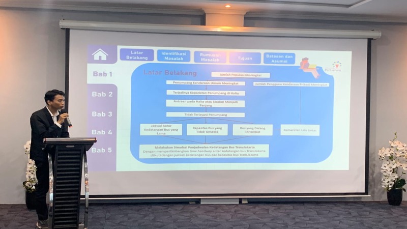 Dokumentasi: Faris memaparkan hasil penelitian pada PT TransJakarta.