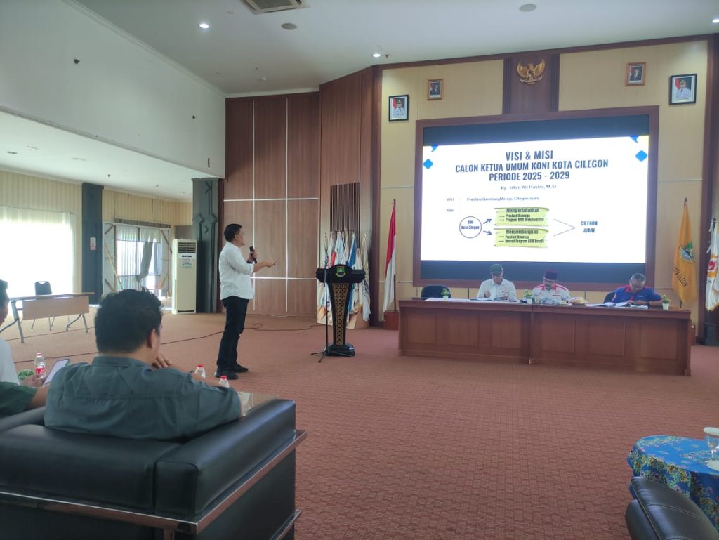 Delik Asia, (Cilegon] |   Irfan Ali Hakim terpilih secara aklamasi sebagai Ketua Umum Komite Olahraga Nasional Indonesia (KONI) Kota Cilegon masa bakti 2025–2029. Ia menggantikan Abdul Salam Salim melalui Musyawarah Olahraga Kota (Musorkot) V yang digelar di Aula Diskominfo Kota Cilegon, Sabtu (13/9/2025).