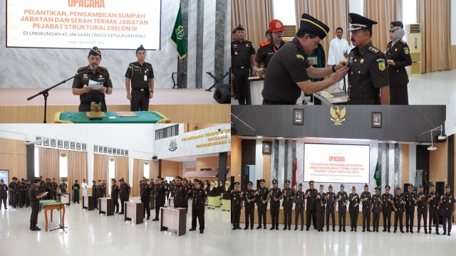Delik Asia, (Kepri – Tanjungpinang) | Kepala Kejaksaan Tinggi Kepulauan Riau J. Devy Sudarso memimpin Upacara Pelantikan, Pengambilan Sumpah Jabatan dan Serah Terima Jabatan Pejabat Struktural Eselon III di lingkungan Kejaksaan Tinggi Kepulauan Riau berlangsung di Aula Sasana Baharudin Lopa Kejati Kepri, Senin (03/11/2025).