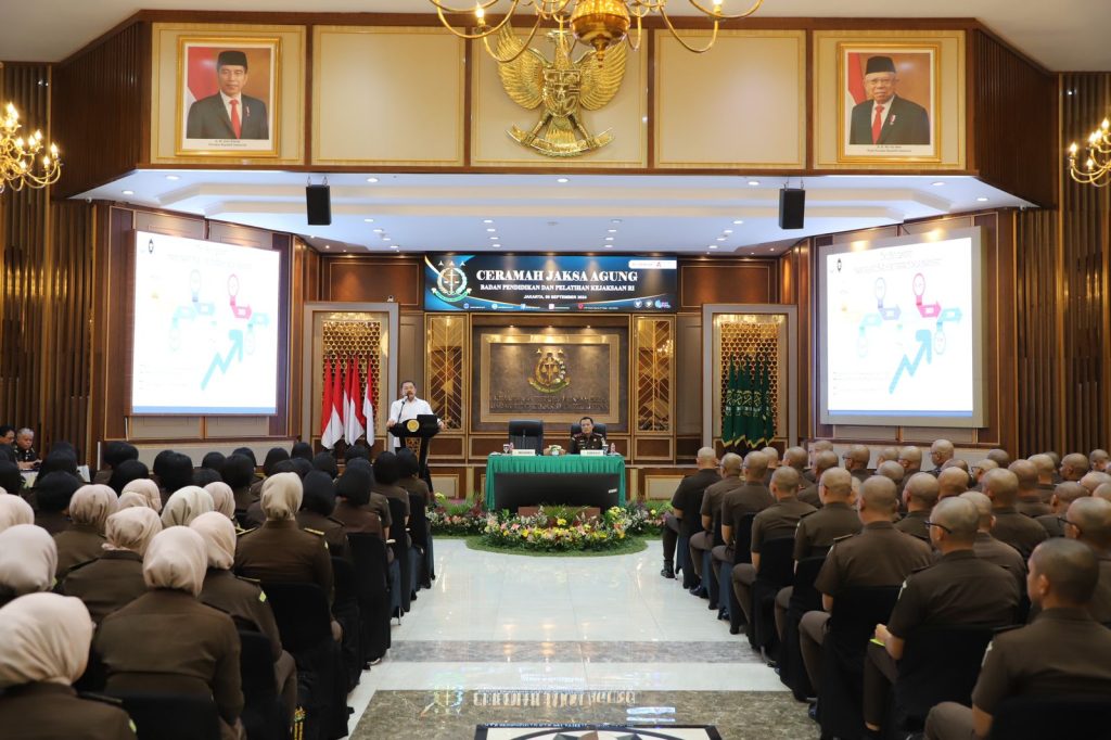Foto Istimewa: Jaksa Agung ST Burhanuddin, saat memberikan ceramah kepada Siswa Pendidikan dan Pelatihan Pembentukan Jaksa (PPPJ) Angkatan LXXXI (81) Gelombang I Tahun 2024 DelikAsia.com, (Jakarta) | Pada Senin 9 September 2024 bertempat di Badan Pendidikan dan Pelatihan Kejaksaan Republik Indonesia, Jaksa Agung ST Burhanuddin memberikan ceramah kepada Siswa Pendidikan dan Pelatihan Pembentukan Jaksa (PPPJ) Angkatan LXXXI (81) Gelombang I Tahun 2024, dengan materi ceramahnya yang berjudul “Jaksa PRIMA”.