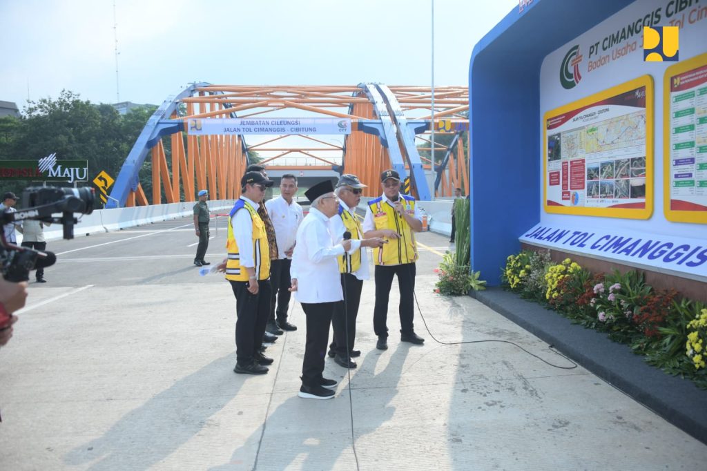 DelikAsia.com, (Bogor) |  Menteri Pekerjaan Umum dan Perumahan Rakyat (PUPR) Basuki Hadimuljono mendampingi Wakil Presiden K.H Ma’ruf Amin meresmikan Jalan Tol Cimanggis-Cibitung di Jembatan Sungai Cileungsi KM 57+400, Kabupaten Bogor, Jawa Barat, Selasa (9/7/2024). Turut hadir Pj Gubernur Jawa Barat Bey Machmudin, Anggota Komisi V DPR RI Mulyadi, Direktur Utama PT SMI Edwin Syahruzad, dan Direktur Utama PT Waskita Karya M. Hanugroho.