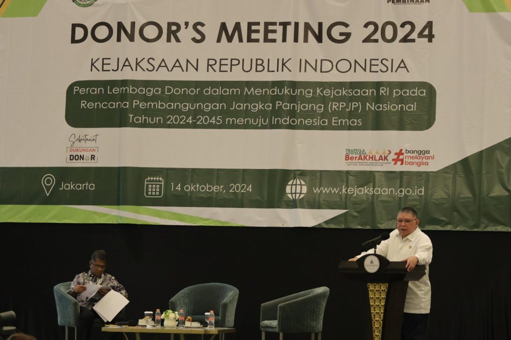 Jaksa Agung Muda Perdata dan Tata Usaha Negara (JAM-Datun) R. Narendra Jatna menyampaikan paparan terkait tugas dan fungsi baru Kejaksaan berdasarkan Undang-Undang Nomor 11 Tahun 2021. Hal tersebut disampaikan saat ia menjadi narasumber dalam acara Donor’s Meeting Kejaksaan RI Tahun 2024, yang berlangsung pada Senin, 14 Oktober 2024, di Gedung Tribrata, Dharmawangsa, Jakarta Selatan. Acara ini bertujuan untuk menjalin kerjasama dan dukungan dalam penguatan penegakan hukum di Indonesia.