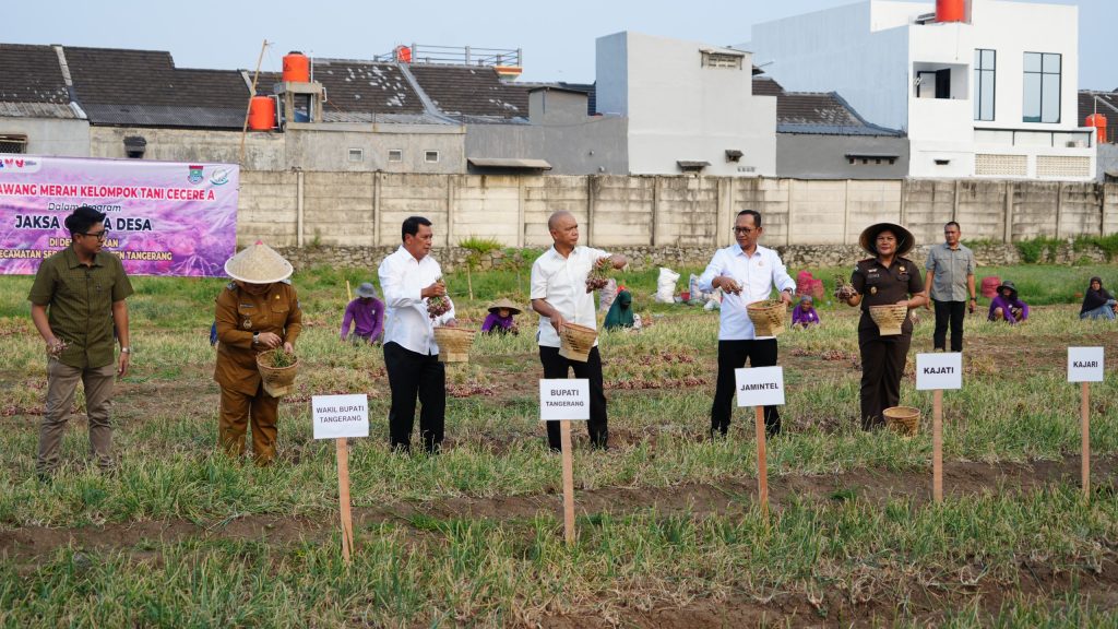Delik Asia, (Tangerang) |  Jaksa Agung Muda Intelijen (JAM Intel) Kejaksaan Agung Prof. Dr. Reda Manthovani, S.H., L.LM., menghadiri panen bawang merah di Desa Sarakan, Kecamatan Sepatan, Kabupaten Tangerang, Senin 8 September 2025. Panen tersebut dilaksanakan bersama, Kepala Kejaksaan Tinggi Banten Dr. Siswanto, S.H., M.H., Bupati Tangerang Moch. Maesyal Rasyid, Kepala Kejaksaan Negeri Kabupaten Tangerang Dr. Afrillianna Purba, S.H., M.H. dan para petani setempat.
