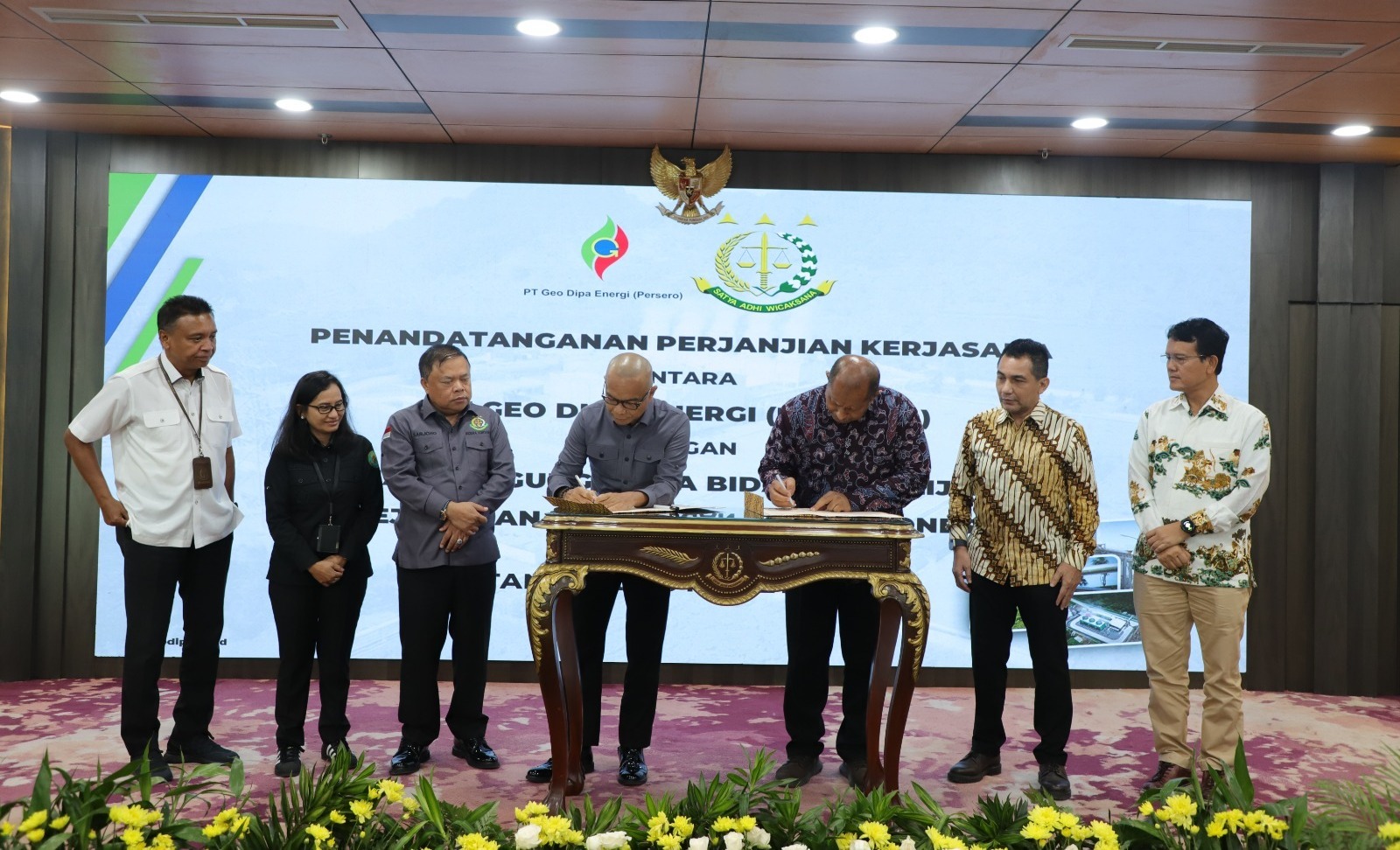 Jaksa Agung Muda Bidang Intelijen (JAM INTEL) melaksanakan Penandatanganan Perjanjian Kerjasama dengan PT Geo Dipa Energi (Persero), dalam rangka mendukung proses pembangunan pembangkit tenaga listrik yang menggunakan energi terbarukan.[Foto: Istimewa]. DelikAsia.com, (Jakarta) | Pada Rabu 6 Maret 2024 bertempat di Aula lt. 22 Gedung Utama Kejaksaan Agung, Jakarta, Jaksa Agung Muda Bidang Intelijen (JAM INTEL) melaksanakan Penandatanganan Perjanjian Kerjasama dengan PT Geo Dipa Energi (Persero), dalam rangka mendukung proses pembangunan pembangkit tenaga listrik yang menggunakan energi terbarukan.