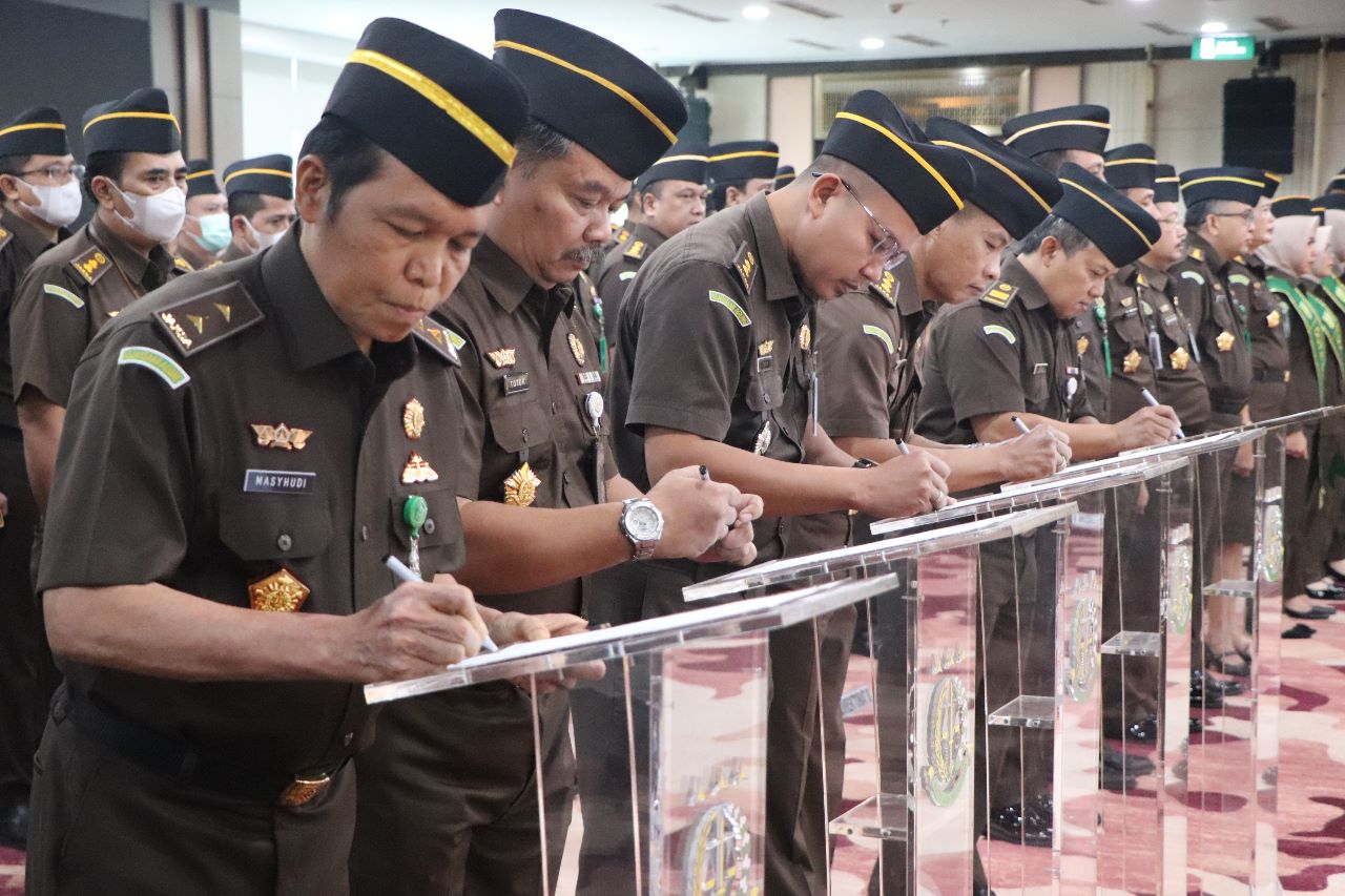 JAM-Intelijen menyampaikan penandatanganan pakta integritas ini adalah suatu janji kita masing-masing kepada institusi ini (Kejaksaan RI) untuk bekerja dengan baik. Oleh karena itu, agar nanti pakta integritas ini dibaca, diresapi, dan juga dilaksanakan sebaik-baiknya khususnya kepada Agen Perubahan untuk memberikan contoh yang baik di lingkungan kerja jajaran Intelijen Kejaksaan Agung.