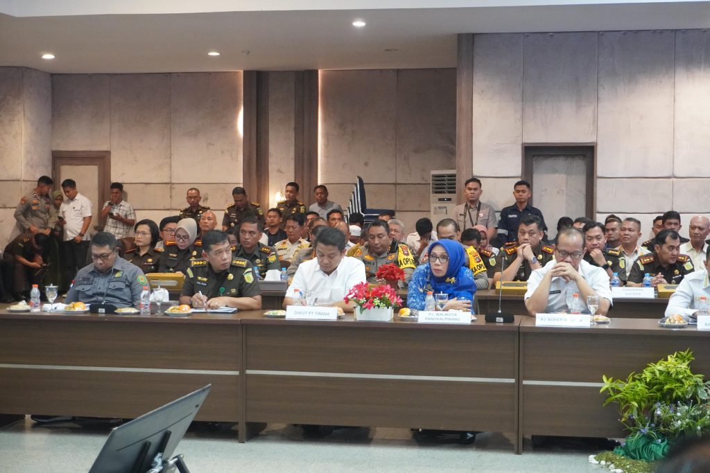 Acara Rapat Koordinasi ini dihadiri oleh Pj Gubernur Kepulauan Bangka Belitung, Direktur Pengamanan Pembangunan Strategis (PPS) pada Jaksa Agung Muda Bidang Intelijen, Direktur Utama PT Timah Tbk, Wakil Kepala Kejaksaan Tinggi Kepulauan Bangka Belitung, Wakil Kepala Kepolisan Daerah Kepulauan Bangka Belitung, Pj Walikota Pangkal Pinang, Pj Bupati Bangka, Bupati Bangka Tengah, Bupati Bangka Barat, Kepala Kejaksaan Negeri pada wilayah hukum setempat, serta Tim Pengamanan Pembangunan Strategis pada Jaksa Agung Muda Bidang Intelijen. (K.3.3.1)