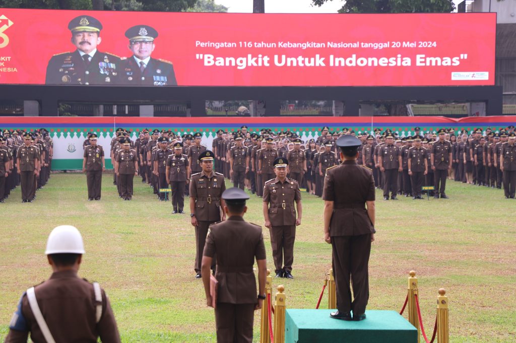 JAM-Pidmil Mayjen TNI Dr. Wahyoedho Indrajit, saat memimpin upacara sekaligus membacakan sambutan Menteri Komunikasi dan Informatika RI pada Upacara Peringatan ke-116 Hari Kebangkitan Nasional dengan tema “Bangkit Untuk Indonesia Emas”. DelikAsia.com, (Jakarta) | Pada Senin 20 Mei 2024 bertempat di Lapangan Upacara Kejaksaan Agung, Jaksa Agung Muda Pidana Militer (JAM-Pidmil) Mayjen TNI Dr. Wahyoedho Indrajit memimpin upacara sekaligus membacakan sambutan Menteri Komunikasi dan Informatika RI pada Upacara Peringatan ke-116 Hari Kebangkitan Nasional dengan tema “Bangkit Untuk Indonesia Emas”.