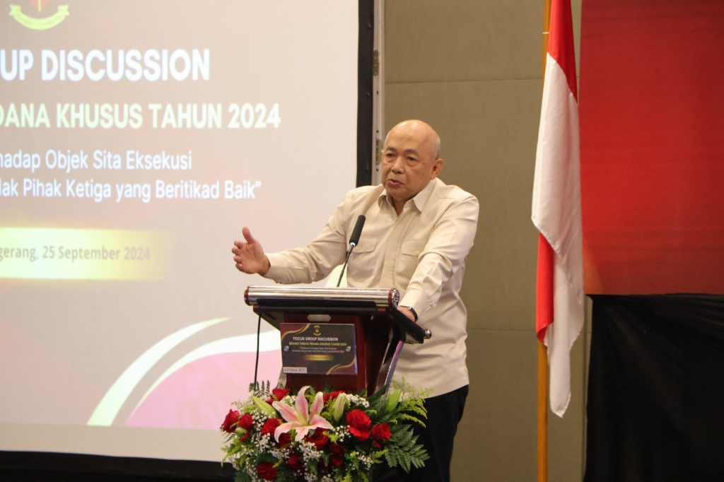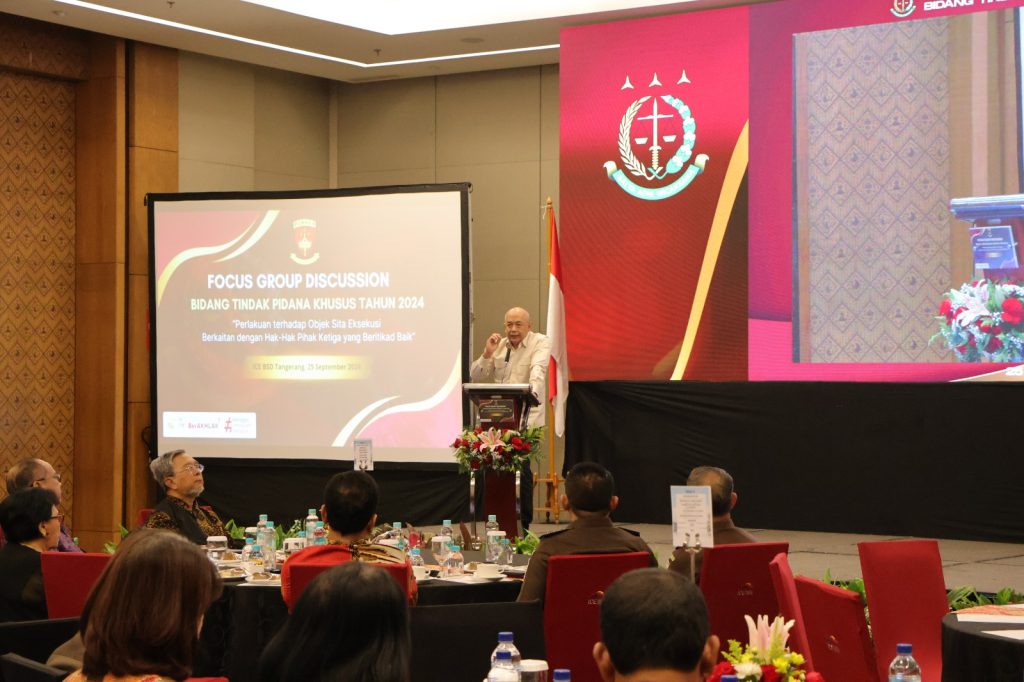 DelikAsia.com, (Jakarta) | Focus Group Discussion (FGD) yang diadakan oleh Jaksa Agung Muda Bidang Tindak Pidana Khusus (JAM PIDSUS) ini mengangkat tema penting: “Perlakuan Terhadap Objek Sita Eksekusi Berkaitan dengan Hak-Hak Pihak Ketiga yang Beritikad Baik”. Acara berlangsung pada 25 September 2024 di Indonesian Convention Exhibition (ICE) BSD, Tangerang.