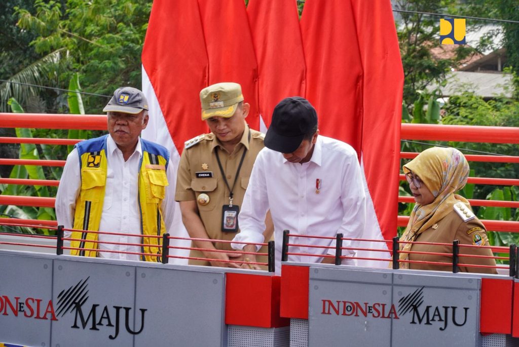 Foto Istimewa: Presiden Joko Widodo didampingi Menteri Pekerjaan Umum dan Perumahan Rakyat (PUPR) Basuki Hadimuljono, saat meresmikan 22 Ruas Jalan Daerah yang ditangani melalui Instruksi Presiden (Inpres) Nomor 3 tahun 2023 DelikAsia.com, (Banjar) | Masih dalam bulan Kemerdekaan RI, Presiden Joko Widodo didampingi Menteri Pekerjaan Umum dan Perumahan Rakyat (PUPR) Basuki Hadimuljono meresmikan 22 Ruas Jalan Daerah yang ditangani melalui Instruksi Presiden (Inpres) Nomor 3 tahun 2023 dan penggantian 16 Jembatan Callender Hamilton (CH) di Provinsi Jawa Barat serta pembangunan Jembatan Ciloseh yang berada di Kota Tasik. Peresmian ketiga infrastruktur jalan dan jembatan tersebut ditandai dengan penekanan tombol sirine dan penandatanganan prasasti oleh Presiden Jokowi yang dipusatkan di Jembatan Citanduy, Kota Banjar, Kamis (29/8/2024).