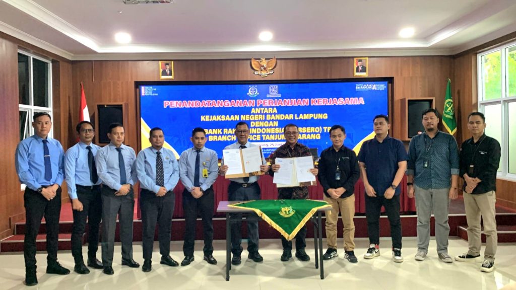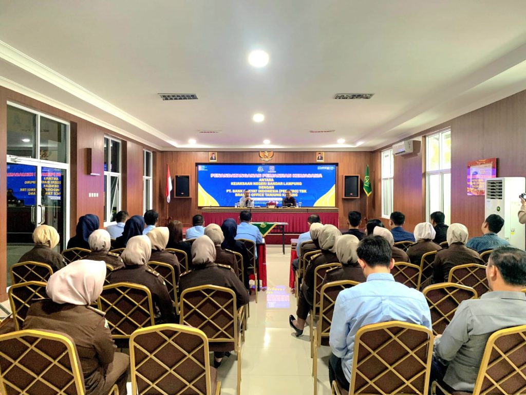 DelikAsia.com, (Bandar Lampung) | Bertempat di Aula Kantor Kejaksaan Negeri (Kejari) Bandar Lampung telah berlangsung kegiatan penandatanganan perjanjian kerjasama atau Memorandum of Understanding (MoU) antara PT. Bank Rakyat Indonesia (Persero) Tbk Branch Office Tanjung Karang dengan Kejaksaan Negeri (Kejari) Bandar Lampung tentang penanganan masalah hukum perdata dan tata usaha Negara (TUN) di wilayah hukum Kota Bandar Lampung, pada Kamis (20/6/2024).