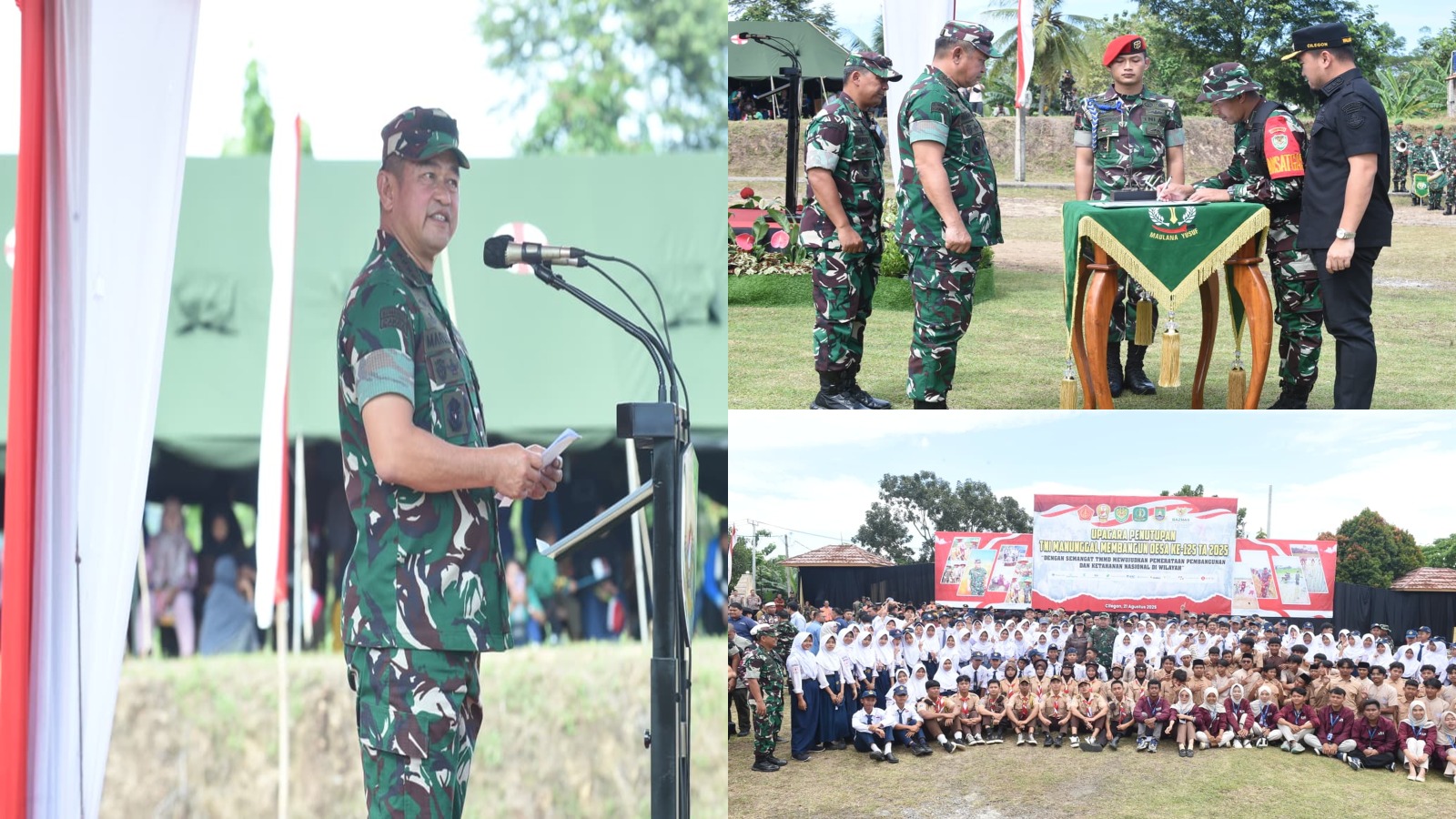 Delik Asia, (Cilegon) | Kepala Staf Angkatan Darat (Kasad) Jenderal TNI Maruli Simanjuntak, M.Sc., menegaskan bahwa TNI Manunggal Membangun Desa (TMMD) merupakan bukti nyata komitmen TNI untuk selalu hadir dan berkarya di tengah masyarakat. Hal tersebut disampaikannya saat secara resmi menutup TMMD ke-125 yang dipusatkan di Lapangan Dinas Sosial Kota Cilegon, Kamis (21/8/2025). Penutupan ini juga berlangsung serentak di 49 kabupaten/kota lainnya di seluruh Indonesia.