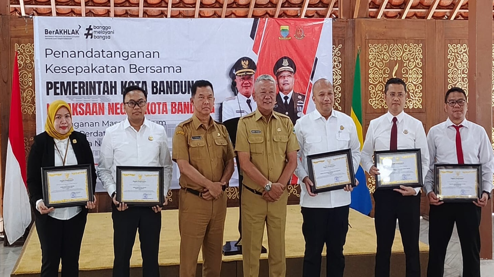 Pj. Wali Kota Bandung, Bambang Tirtoyuliono memberikan penghargaan kepada enam Jaksa Pengacara Negara (JPN) Kejaksaan Negeri (Kejari) Kota Bandung, Penghargaan diberikan atas keberhasilan mereka menyelamatkan aset Pemkot Bandung.