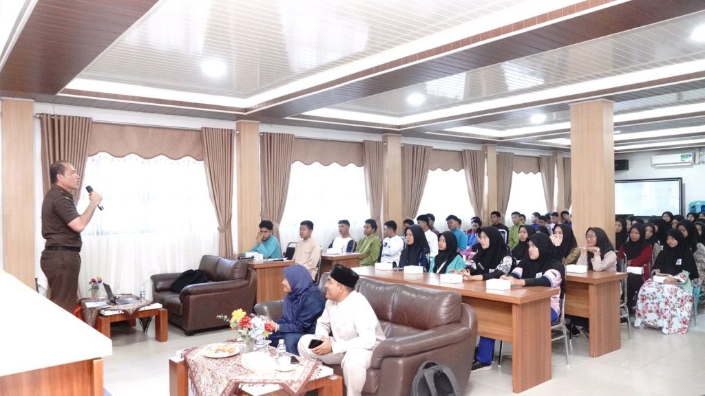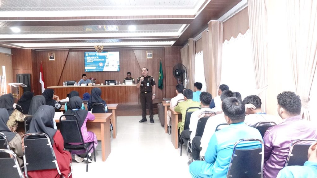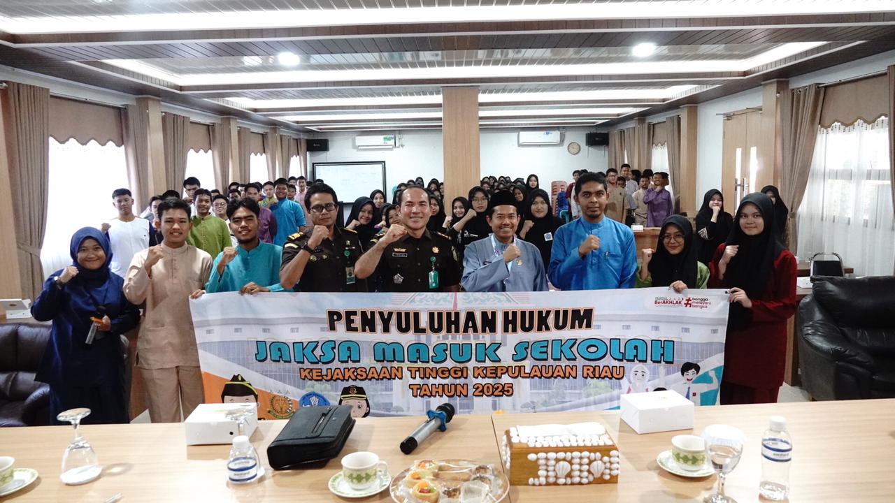 Delik Asia, (Kepri – Batam) | Kejaksaan Tinggi Kepulauan Riau melalui Program Pembinaan Masyarakat Taat Hukum (BINMATKUM) pada kegiatan Penyuluhan Hukum kembali menggencarkan kegiatan Program Jaksa Masuk Sekolah di Madrasah Aliyah Negeri 1 Batam dengan mengangkat tema tentang “Pencegahan Penyalahgunaan dan Peredaran Gelap Narkotika, Psikotropika dan Zat Adiktif Lainnya (Napza) serta Anti Perundungan (Bullying) dan Bijak Bermedia Sosial”. Kegiatan ini dilaksanakan dalam rangka pembentukan revolusi mental karakter dan peningkatan kesadaran hukum anak bangsa merupakan generasi penerus bangsa, Kamis (25/09/2025).