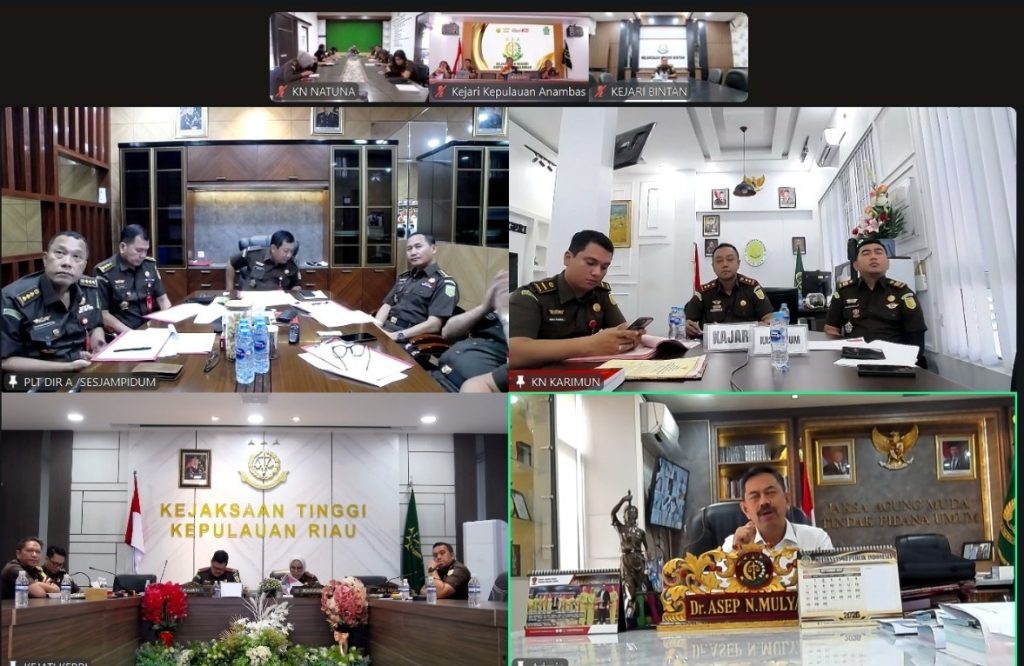 Delik Asia, (Kepri – Tanjungpinang) | Wakil Kepala Kejaksaan Tinggi Kepulauan Riau Irene Putrie didampingi para Kepala Seksi pada Bidang Pidum Kejati Kepri, Kajari Kepulauan Anambas Budhi Purwanto, S.H., M.H., Kasi Pidum dan Jajaran Pidum Kejari Kepulauan Anambas kembali melaksanakan ekspose permohonan penghentian penuntutan berdasarkan Keadilan Restoratif terhadap perkara Kekerasan Terhadap Anak dan Penghapusan Kekerasan Dalam Rumah Tangga di hadapan Jaksa Agung Muda Tindak Pidana Umum Kejaksaan Agung RI Prof. Dr. Asep Nana Mulyana, SH. M. Hum yang dilaksanakan melalui sarana virtual, Senin (29/09/2025).