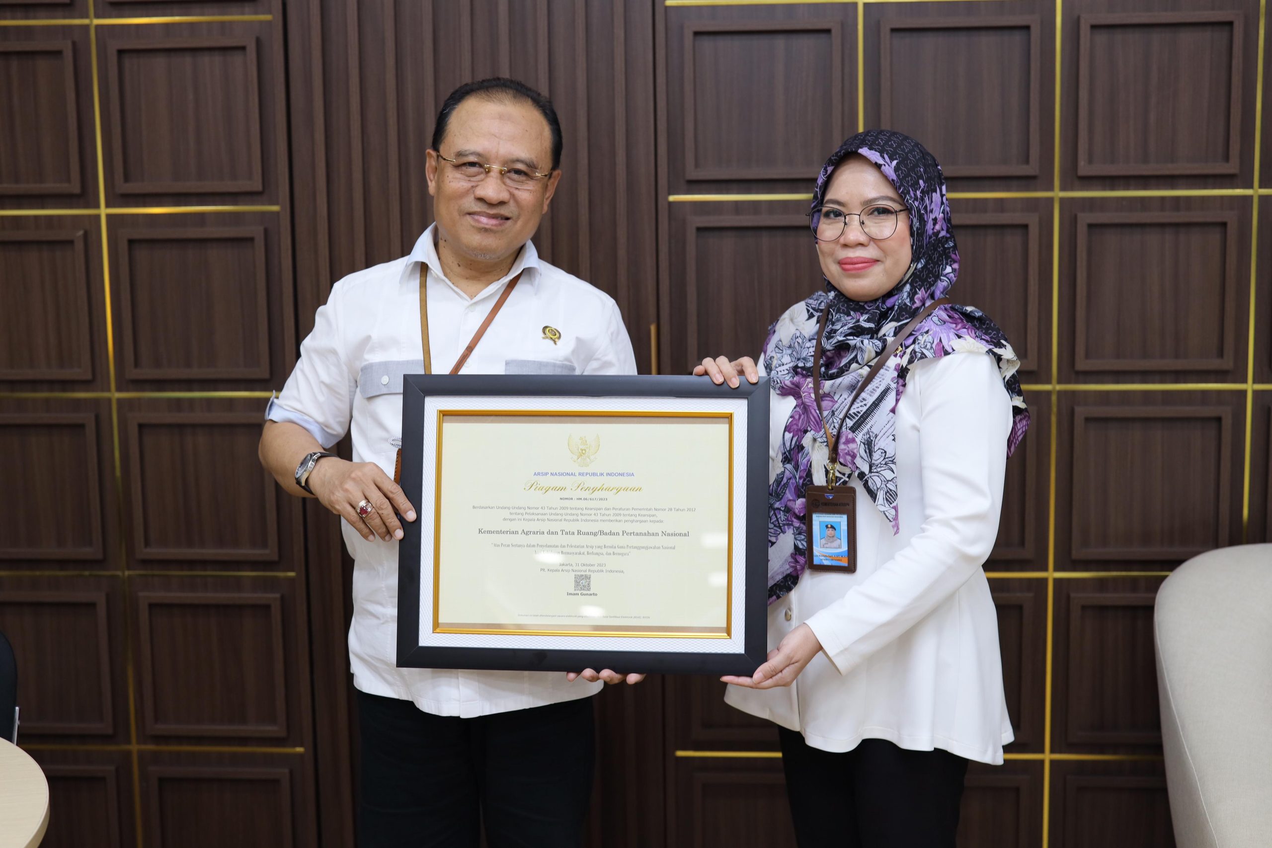 Kementerian Agraria dan Tata Ruang/Badan Pertanahan Nasional (ATR/BPN) meraih penghargaan dari Arsip Nasional Republik Indonesia (ANRI) DelikAsia.com, (Jakarta) | Kementerian Agraria dan Tata Ruang/Badan Pertanahan Nasional (ATR/BPN) meraih penghargaan dari Arsip Nasional Republik Indonesia (ANRI) atas peran sertanya dalam penyelamatan dan penyelesaian arsip yang bernilai guna pertanggungjawaban nasional bagi kehidupan bermasyarakat, berbangsa, dan bernegara. Penghargaan ini diumumkan pada Selasa (31/10/2023) lalu di Ruang Sekretaris Jenderal (Sekjen) Kementerian ATR/BPN dan resmi diterima oleh Kementerian ATR/BPN pada Rabu (21/12/2023).