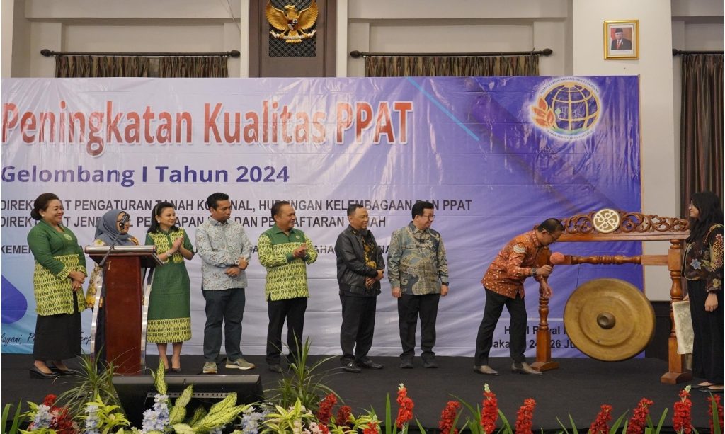 DelikAsia.com, (Jakarta) | Kementerian Agraria dan Tata Ruang/Badan Pertanahan Nasional (ATR/BPN) menggelar Peningkatan Kualitas Pejabat Pembuat Akta Tanah (PPAT) Gelombang I Tahun 2024 di Royal Kuningan Hotel pada Senin s.d. Rabu, 24-26 Juni 2024. Kegiatan ini bertujuan menghasilkan PPAT yang berkualitas dan profesional di tengah transformasi digital yang dijalankan Kementerian ATR/BPN dalam melayani masyarakat.