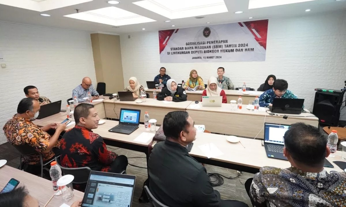 DelikAsia.com, (Jakarta) |  Kementerian Koordinator Bidang Politik, Hukum, dan Keamanan melalui unit Deputi Bidang Koordinasi Hukum dan HAM melaksanakan Sosialisasi Penerapan Standar Biaya Masukan (SBM) Tahun 2024.