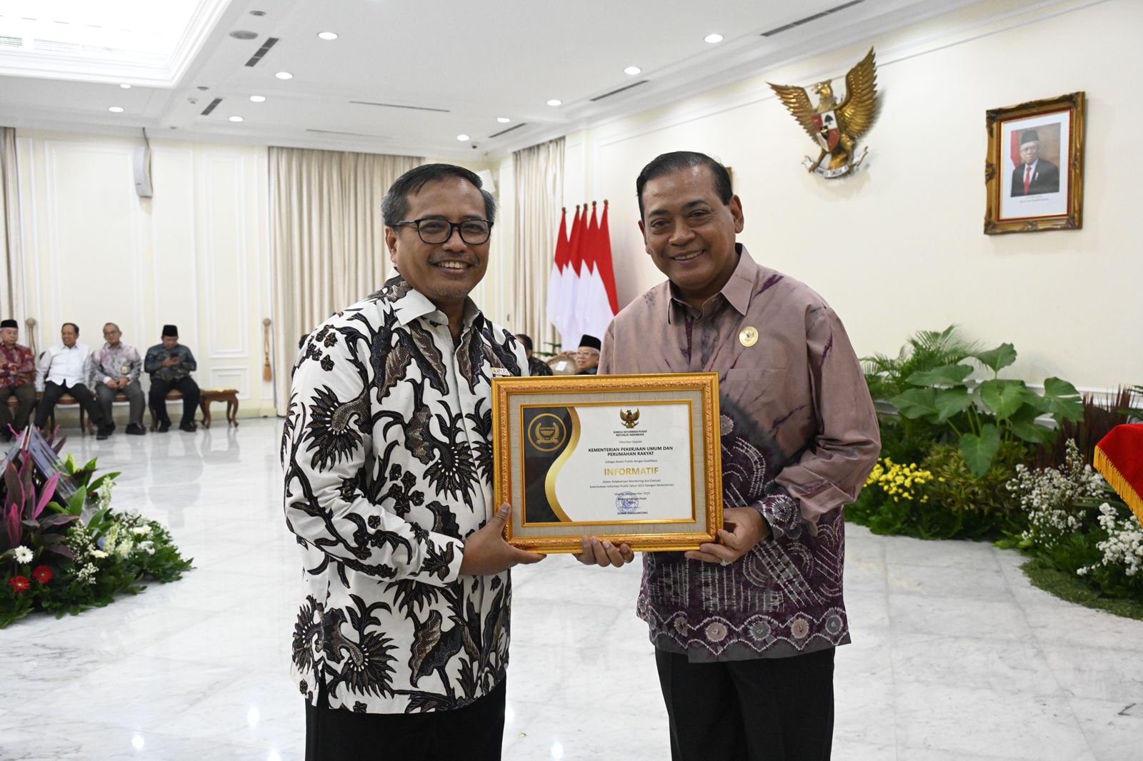 Penghargaan tersebut diserahkan langsung oleh Ketua KIP Donny Yoesgiantoro kepada Sekretaris Jenderal (Sekjen) Kementerian PUPR Mohammad Zainal Fatah mewakili Menteri PUPR Basuki Hadimuljono, pada Selasa (19/12/2023) di Istana Wakil Presiden RI, Jakarta.
