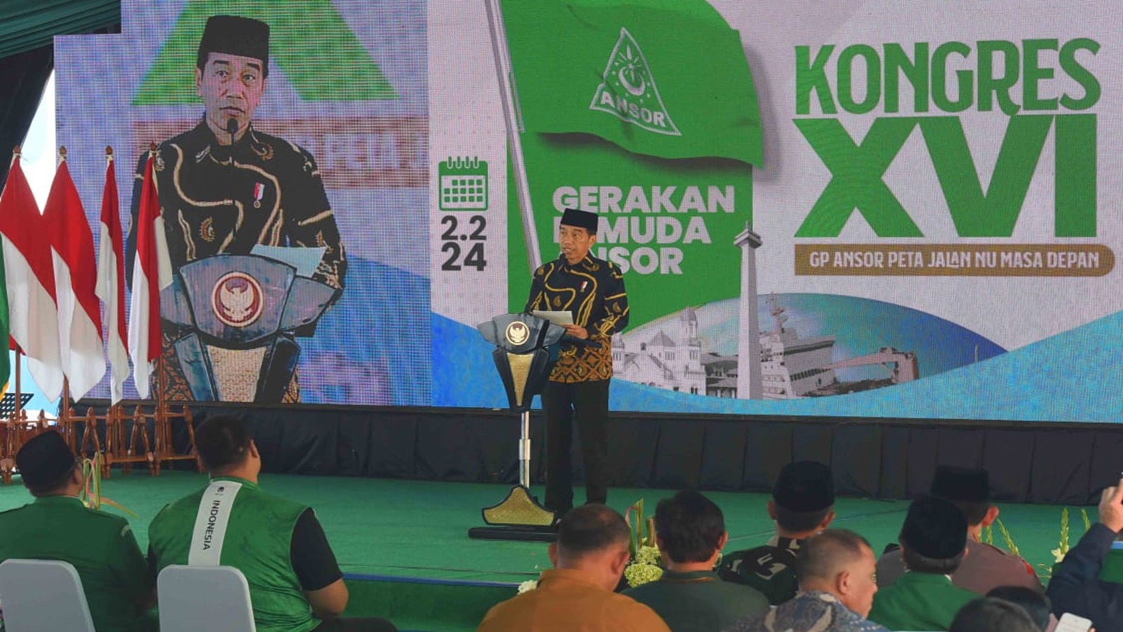 Hal tersebut disampaikan Presiden Jokowi saat meresmikan Pembukaan Kongres XVI Gerakan Pemuda (GP) Ansor, di Pelabuhan Tanjung Priok, Jakarta Utara, DKI Jakarta, Jumat (02/02/2024).
