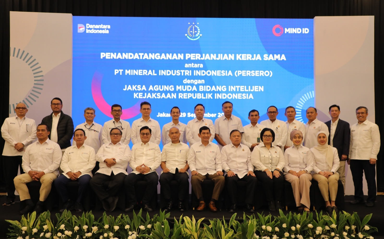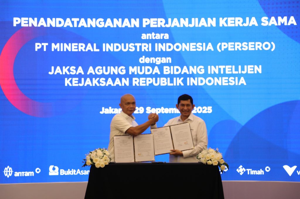 Delik Asia, (Jakarta) |  Jaksa Agung Muda Intelijen (JAM-Intel) Reda Manthovani melaksanakan penandatanganan Perjanjian Kerja Sama dengan Direkur Utama PT Mineral Industri Indonesia (Persero) atau MIND ID Maroef Sjamsoeddin pada Senin 29 September 2025 di Graha CIMB Niaga Jakarta. Kegiatan ini merupakan implementasi dari fungsi pengamanan pembangunan strategis Kejaksaan terhadap sektor pertambangan.