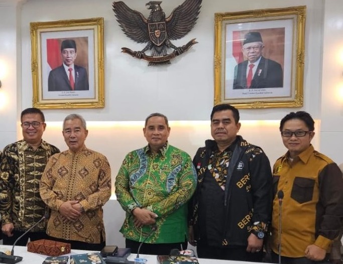 Capture: Tampak H. Farid Aljawi (kedua kanan) Ketua Harian BERSATHU didampingi Sekjen Rizky Sembada (kanan) bersama sebagian Peserta Rapat koordinasi persiapan ibadah haji 2025 di Kementerian Agama, Kamis (26/09/2024) DelikAsia.com, (Jakarta) | Asosiasi Kebersamaan Pengusaha Travel Haji Umroh (BERSATHU) hadiri rapat koordinasi persiapan ibadah haji 2025 bersama Kementerian Agama yang digelar di Ruang Sidang 1 Ditjen Penyelenggaraan Haji Umroh pada Kamis (26/09/2024).