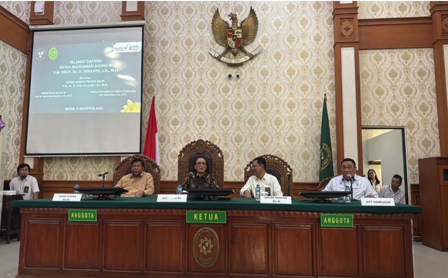 Ketua Mahkamah Agung Yang Mulia Prof. Dr. Sunarto, S.H., M.H. memberikan pembinaan dan pengarahan kepada seluruh aparatur peradilan di wilayah hukum Pengadilan Tinggi Denpasar, Senin (4/8). Dalam kesempatan tersebut, Ketua Mahkamah Agung menekankan pentingnya spiritualitas dan integritas dalam menjalankan tugas peradilan.