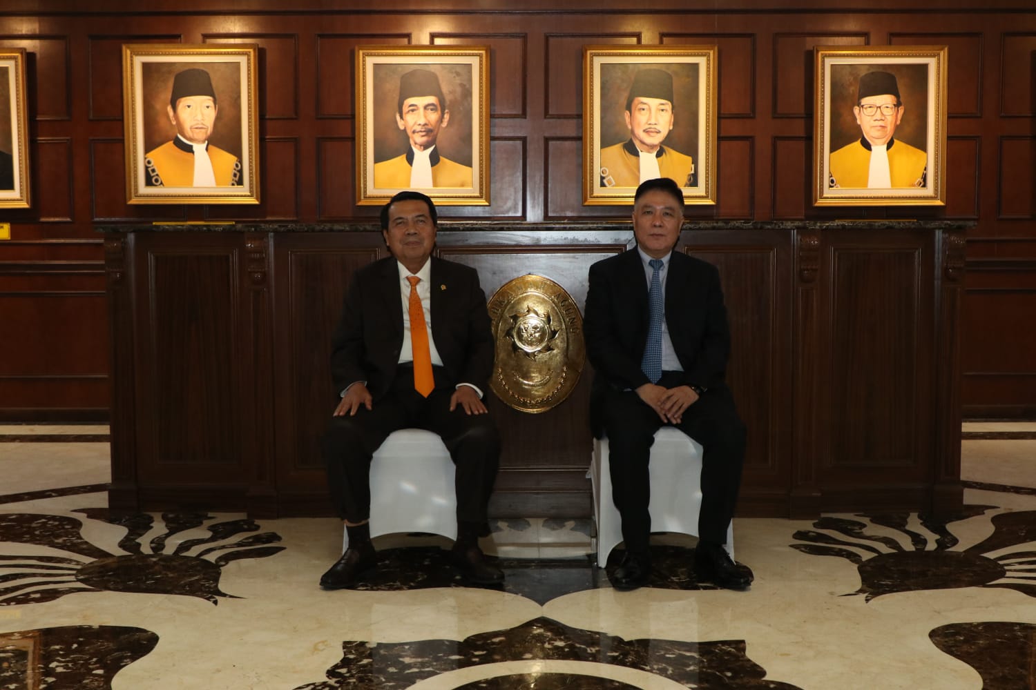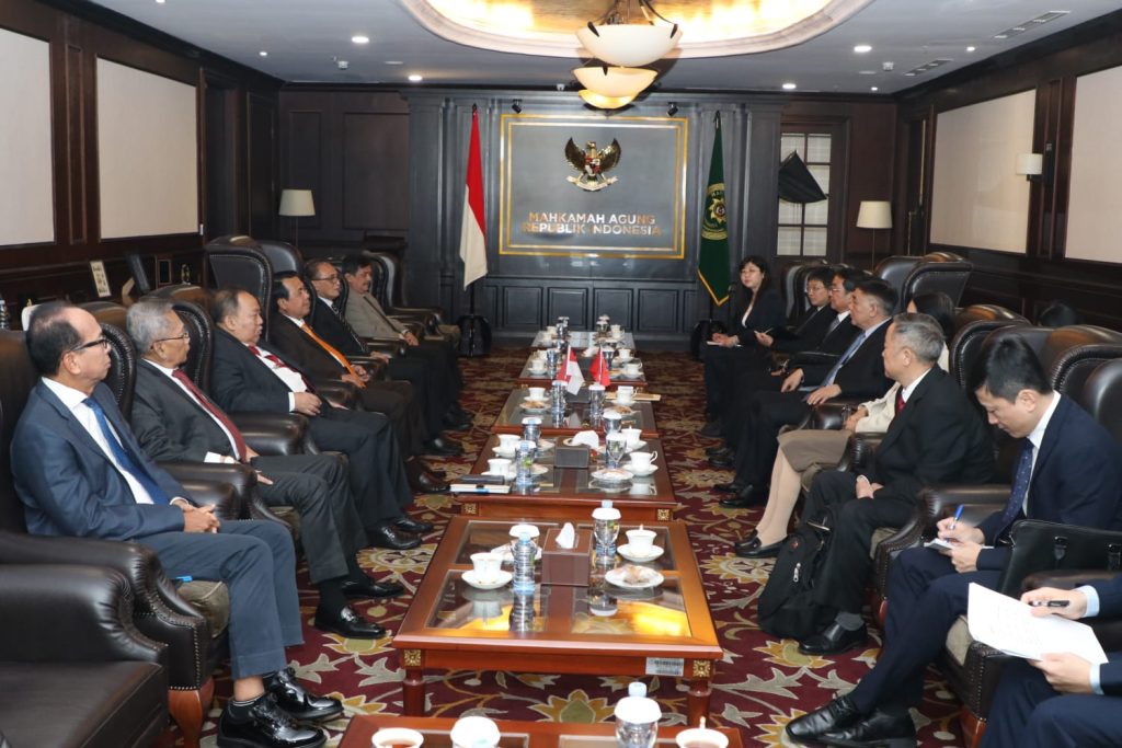 Ketua Mahkamah Agung Prof. Dr. H. M. Syarifuddin, S.H., M.H. saat menerima Kunjungan Delegasi Mahkamah Agung China yang diketuai oleh Hakim Agung Mahkamah Agung China H.E. Mr LIU Guixiang DelikAsia.com, (Jakarta) | Ketua Mahkamah Agung Prof. Dr. H. M. Syarifuddin, S.H., M.H. menerima kunjungan Delegasi Mahkamah Agung China yang diketuai oleh Hakim Agung Mahkamah Agung China H.E. Mr LIU Guixiang, Ketua Pengadilan Tinggi Tianjin Ms. LI Jing, Ketua Pengadilan Tinggi Henan Mr. HU Daocai, Wakil Direktur Departemen Pelaksanaan Umum Mahkamah Agung China Mr. MAO Lihua, Wakil Ketua Pengadilan Tinggi Hunan Mr GUO Zhenghuai, Pejabat Departemen Kerja Sama Internasional Mahkamah Agung China Ms. ZHAO Qian, pada Kamis, 13 Juni 2024 di gedung Mahkamah Agung lantai 13.