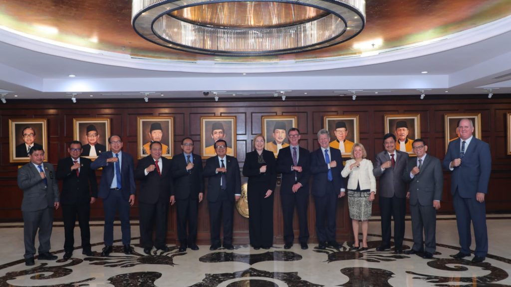 DelikAsia.com, (Jakarta)  |  Ketua Mahkamah Agung Prof. Dr. H. M. Syarifuddin, S.H., M.H menerima kunjungan kehormatan dari delegasi Federal Court of Australia (FCA) yang dipimpin oleh Justice Berna Collier sebagai kepala delegasi, didampingi oleh Justice Stephen Burley, Justice Robert Bromwich dan Principal Registrar Sia Lagos.