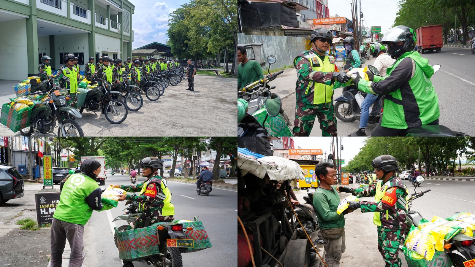 Distribusi dilakukan menggunakan 32 unit motor dinas along-along Babinsa yang bergerak menyusuri sejumlah titik kota, menyasar warga kecil yang paling merasakan dampak seperti tukang becak, ojek online, hingga para warga prasejahtera. Mereka disebut mengalami penurunan pendapatan karena aktivitas sehari-hari sempat terganggu imbas aksi massa.