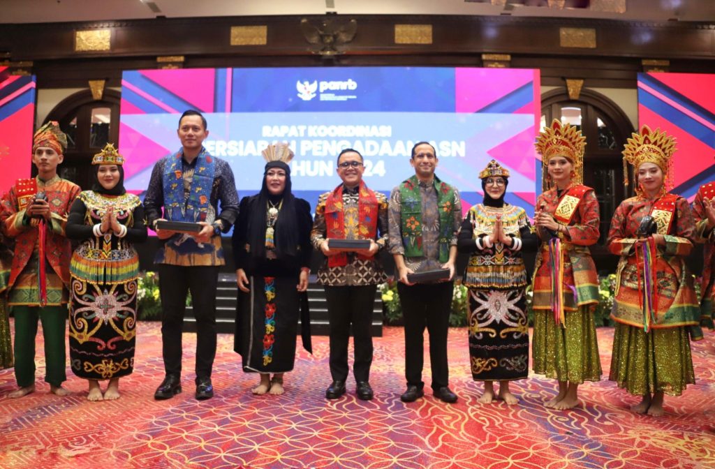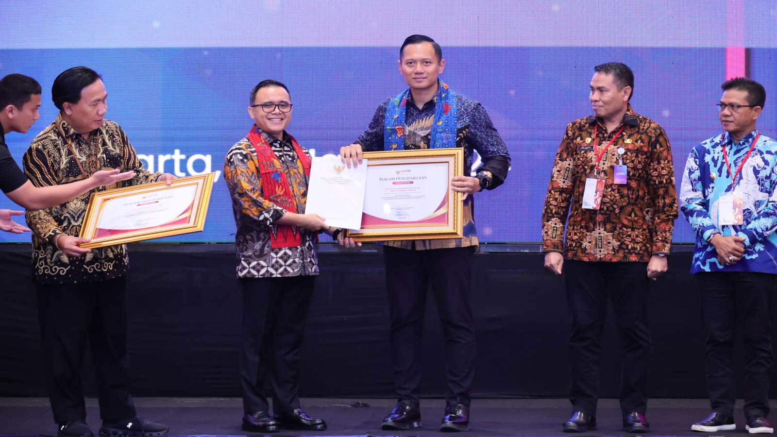 Penghargaan diberikan langsung oleh Menteri PANRB, Abdullah Azwar Anas kepada Menteri ATR/Kepala BPN, Agus Harimurti Yudhoyono (AHY) pada Rapat Koordinasi Persiapan Pengadaan ASN Tahun 2024 yang berlangsung di Birawa Assembly Hall, Hotel Bidakara, Jakarta, Kamis (14/03/2024).