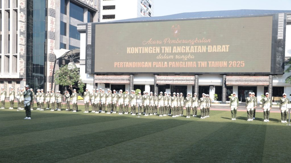 Delik Asia, (Jakarta) | Inspektur Jenderal TNI Angkatan Darat (Irjenad) Letnan Jenderal TNI Erwin Djatniko, S.Sos., secara resmi melepas Kontingen TNI AD yang akan berlaga pada ajang olahraga bergengsi Piala Panglima TNI di Markas Besar Angkatan Darat (Mabesad), Kamis (28/9/2025).