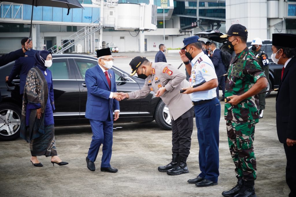 Selain Ibu Hj. Wury Ma’ruf Amin, mendampingi Wapres dalam kunker kali ini, Kepala Sekretariat Wakil Presiden Ahmad Erani Yustika, Deputi Bidang Dukungan Kebijakan Ekonomi dan Peningkatan Daya Saing Guntur Iman Nefianto, Deputi Bidang Administrasi Sapto Harjono Wahjoe Sedjati, Direktur Jenderal Protokol dan Konsuler/Kepala Protokol Negara Andy Rachmianto, Staf Khusus Wapres Masykuri Abdillah, Masduki Baidlowi, dan Zumrotul Mukaffa,Tim Ahli Wakil Presiden Farhat Brachma, serta Plt. Direktur Eksekutif Komite Nasional Ekonomi dan Keuangan Syariah Taufik Hidayat (SK-BPMI, Setwapres)