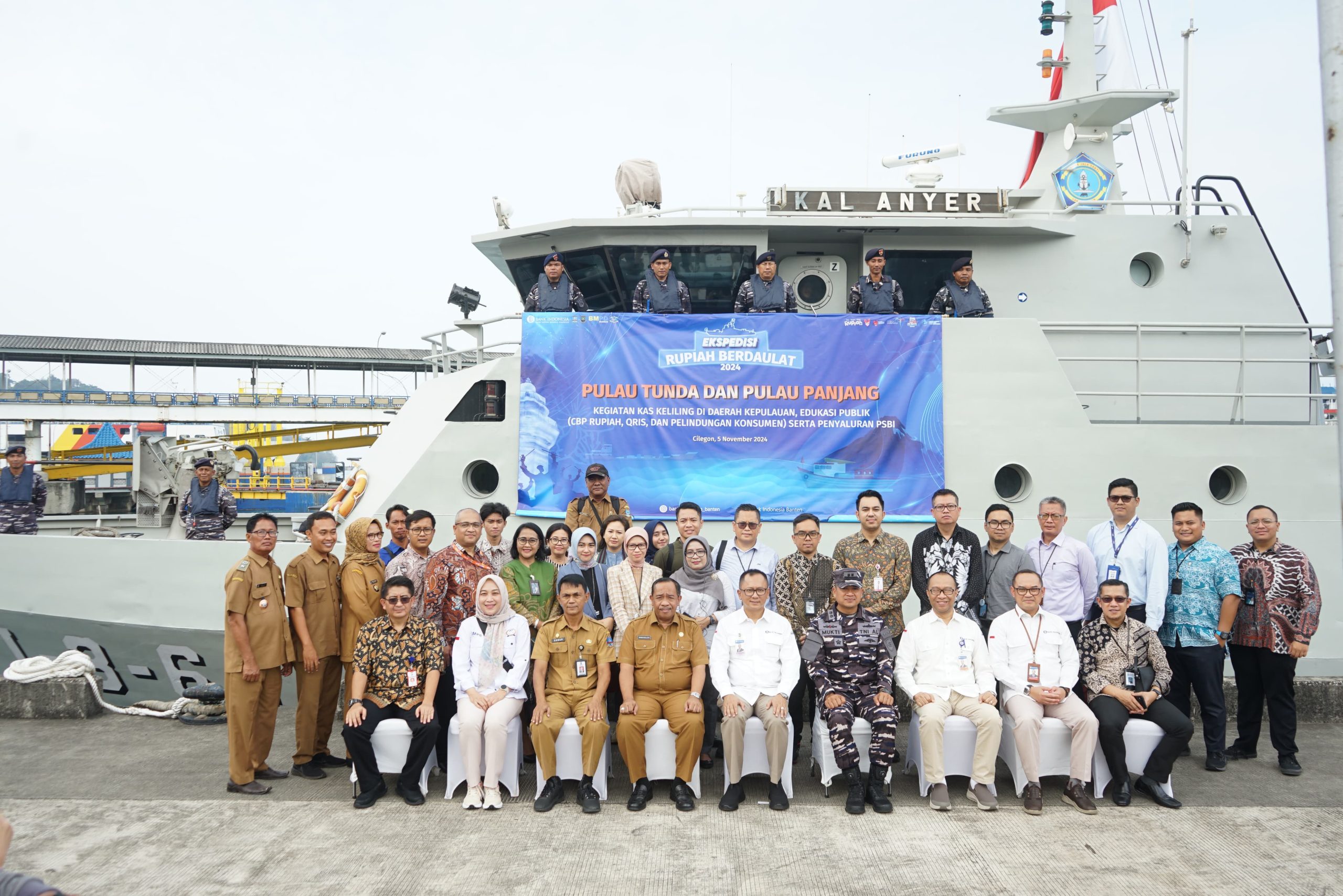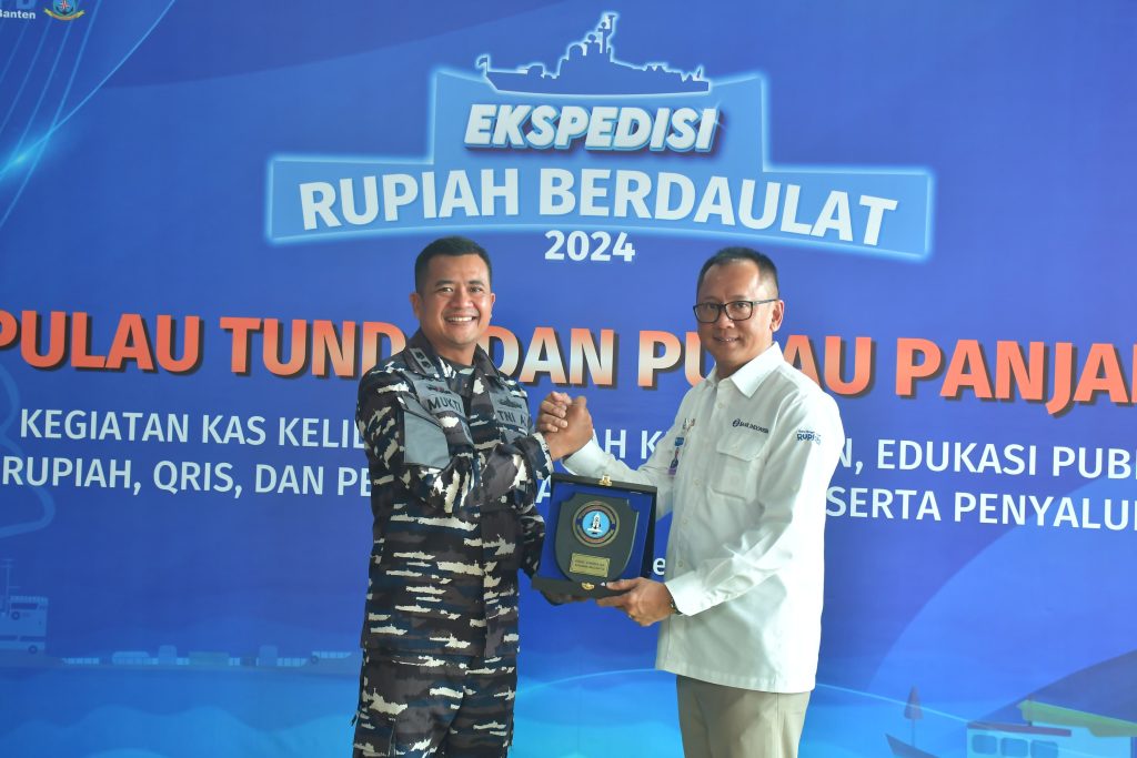 Sementara itu, Komandan Lanal Banten Kolonel Laut (P) Arif Rahman, S.T., M.Tr. Hanla., M.M., dalam sambutannya yang diwakili oleh Palaksa Letkol Laut (P) Sopan Mukti, S.E., M.Tr. Opsla menyampaikan bahwa Pangkalan TNI Angkatan Laut Banten merasa terhormat dan siap mendukung penuh kegiatan kas keliling ini. Sebagai bagian dari TNI AL yang bertugas menjaga kedaulatan di wilayah Perairan Banten, kami memiliki tanggung jawab untuk memastikan bahwa setiap upaya pelayanan masyarakat berjalan dengan aman dan lancar. Kehadiran Bank Indonesia di Pulau Tunda dan Pulau Panjang bukan hanya memastikan stabilitas ekonomi, tetapi juga simbol kehadiran negara di tengah masyarakat. Kami berharap masyarakat dapat menikmati manfaat secara langsung. Semoga kegiatan ini dapat membangkitkan semangat masyarakat pulau dalam berkontribusi bagi kemajuan ekonomi wilayah demi mewujudkan Indonesia yang lebih inklusif dan sejahtera.