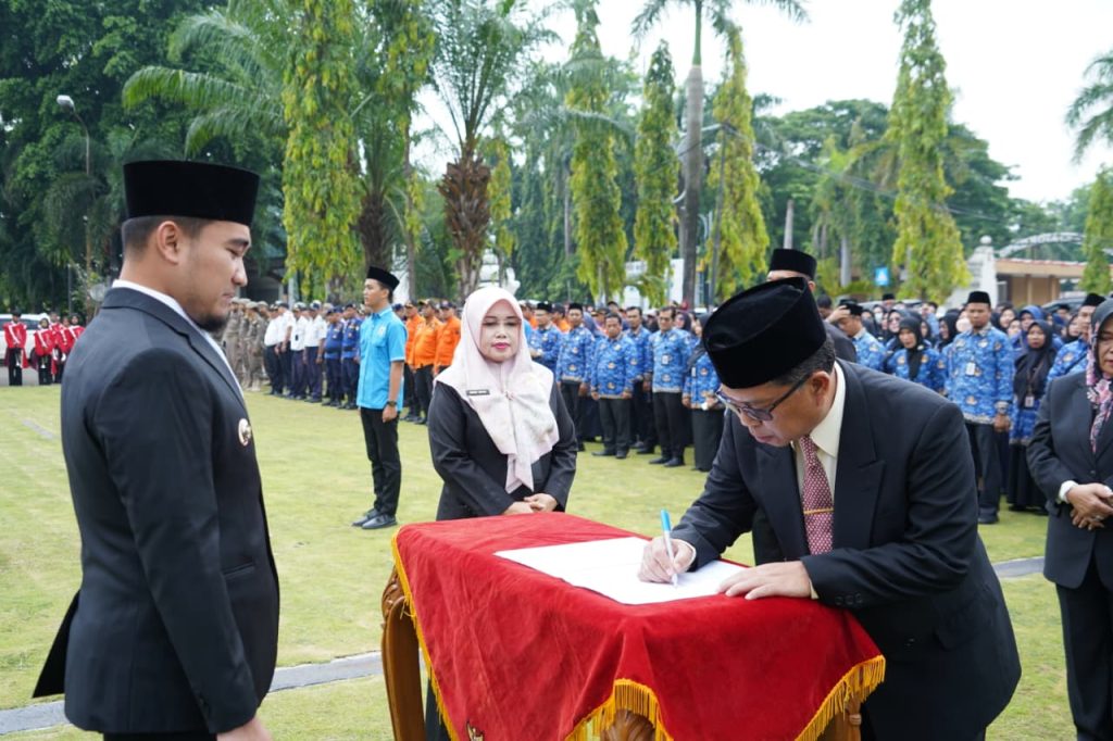Delik Asia, (Cilegon) | Pemerintah Kota (Pemkot) Cilegon melaksanakan penandatanganan komitmen kerjasama antara Dinas Penanaman Modal dan Pelayanan Terpadu Satu Pintu (DPMPTSP) Kota Cilegon dengan sembilan Organisasi Perangkat Daerah (OPD) Teknis di Kota Cilegon. Penandatanganan tersebut termasuk dalam salah satu rangkaian upacara Hari Sumpah Pemuda yang diselenggarakan pada Halaman Kantor Wali Kota Cilegon, Selasa 28 Oktober 2025.