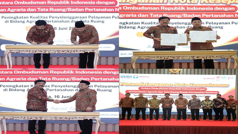 Jakarta, (DelikAsia.com) | Kementerian Agraria dan Tata Ruang/Badan Pertanahan Nasional (ATR/BPN) melakukan penandatanganan Nota Kesepahaman dengan Ombudsman Republik Indonesia (RI) terkait Peningkatan Kualitas Penyelenggaraan Pelayanan Publik di Bidang Agraria/Pertanahan dan Tata Ruang. Kerja sama yang berjalan sejak 2018 ini akan dilanjutkan hingga lima tahun ke depan.