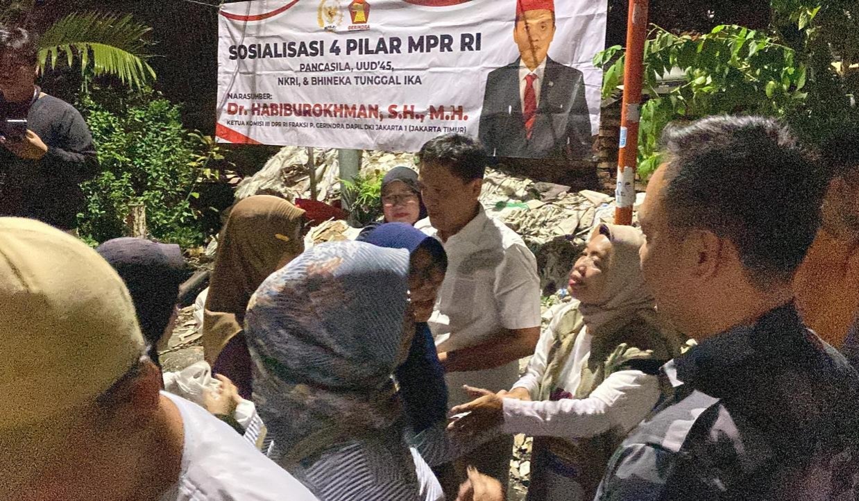 Jakarta, (Delik Asia) | Ketua Komisi I DPR RI dari Fraksi Partai Gerindra, Habiburrokhman, melaksanakan kegiatan reses dengan menyapa langsung warga di Kelurahan Pulogadung, Kecamatan Pulogadung, Jakarta Timur. Dalam kunjungan tersebut, ia didampingi oleh Anggota DPRD DKI Jakarta Adnan Taufiq, menyusuri permukiman dari gang ke gang guna menyerap aspirasi masyarakat secara langsung.