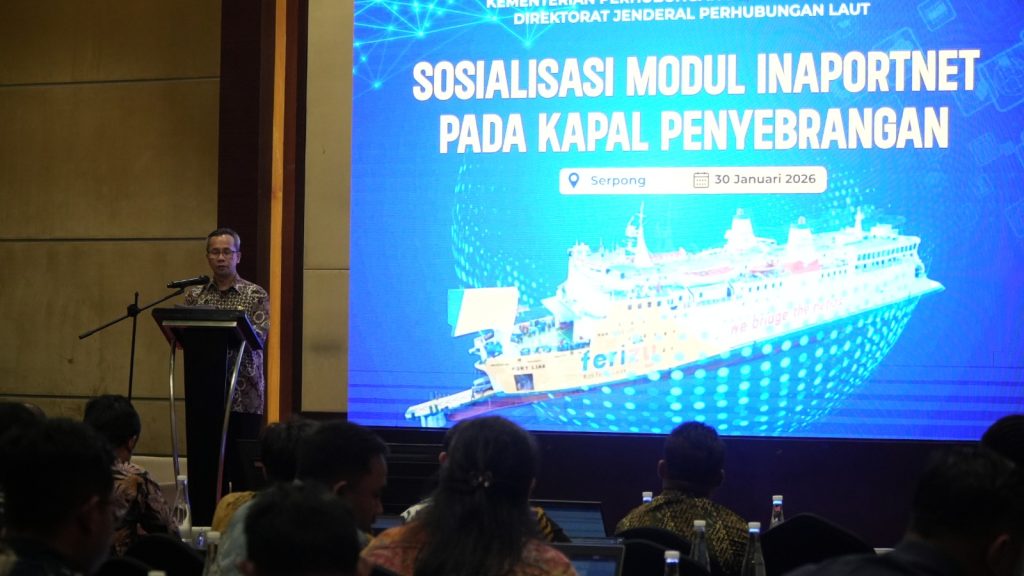 Tangerang Selatan, (Delik Asia) | Direktorat Jenderal Perhubungan Laut Kementerian Perhubungan melalui Direktorat Lalu Lintas dan Angkutan Laut menyelenggarakan kegiatan Sosialisasi Modul Pelayanan Kapal Penyeberangan pada Inaportnet sebagai bagian dari upaya mendorong transformasi digital dan peningkatan kualitas layanan penerbitan Surat Persetujuan Berlayar (SPB) pada angkutan sungai, danau, dan penyeberangan.