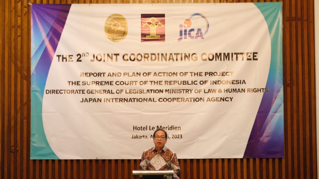 Jakarta, (DelikAsia.com) | Mahkamah Agung RI menyelenggarakan kegiatan Koordinasi Bersama dengan Kementerian Hukum dan HAM dan JICA (Japan International Cooperation Agency) pada Selasa 8 Agustus 2023 di hotel Lee Meridien Jakarta. Acara dibuka secara resmi oleh Ketua Kamar Perdata Mahkamah Agung I Gusti Agung Sumantha, S.H,. M.H. Kegiatan ini bertujuan untuk membahas laporan dan rencana aksi ketiga lembaga tersebut dalam kerja sama yang telah dan akan berlangsung ke depannya.