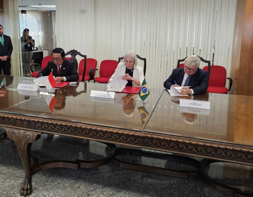 Nota Kesepahaman ditanda tangani oleh Ketua MARI yang mewakili Mahkamah Agung RI dengan President Maria Thereza De Assis Moura, Presiden National High Court of Brazil (STJ) dan Antonio Herman Benjamin Presiden Terpilih National High Court of Brazil (STJ) yang mewakili STJ.