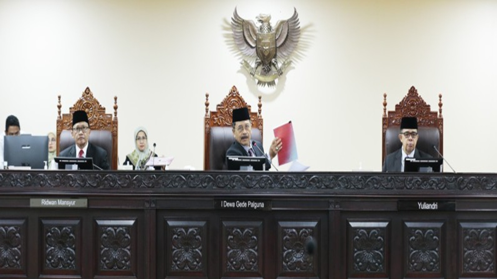 Hakim Konstitusi Ridwan Mansyur mewakili dari hakim konstitusi yang aktif; I Dewa Gede Palguna (Hakim Konstitusi Masa Jabatan 2003–2008 dan 2015–2020) mewakili tokoh masyarakat; dan Yuliandri yang merupakan akademisi dari Universitas Andalas bertindak mewakili kalangan akademisi yang berlatar belakang bidang hukum.[RED/**].