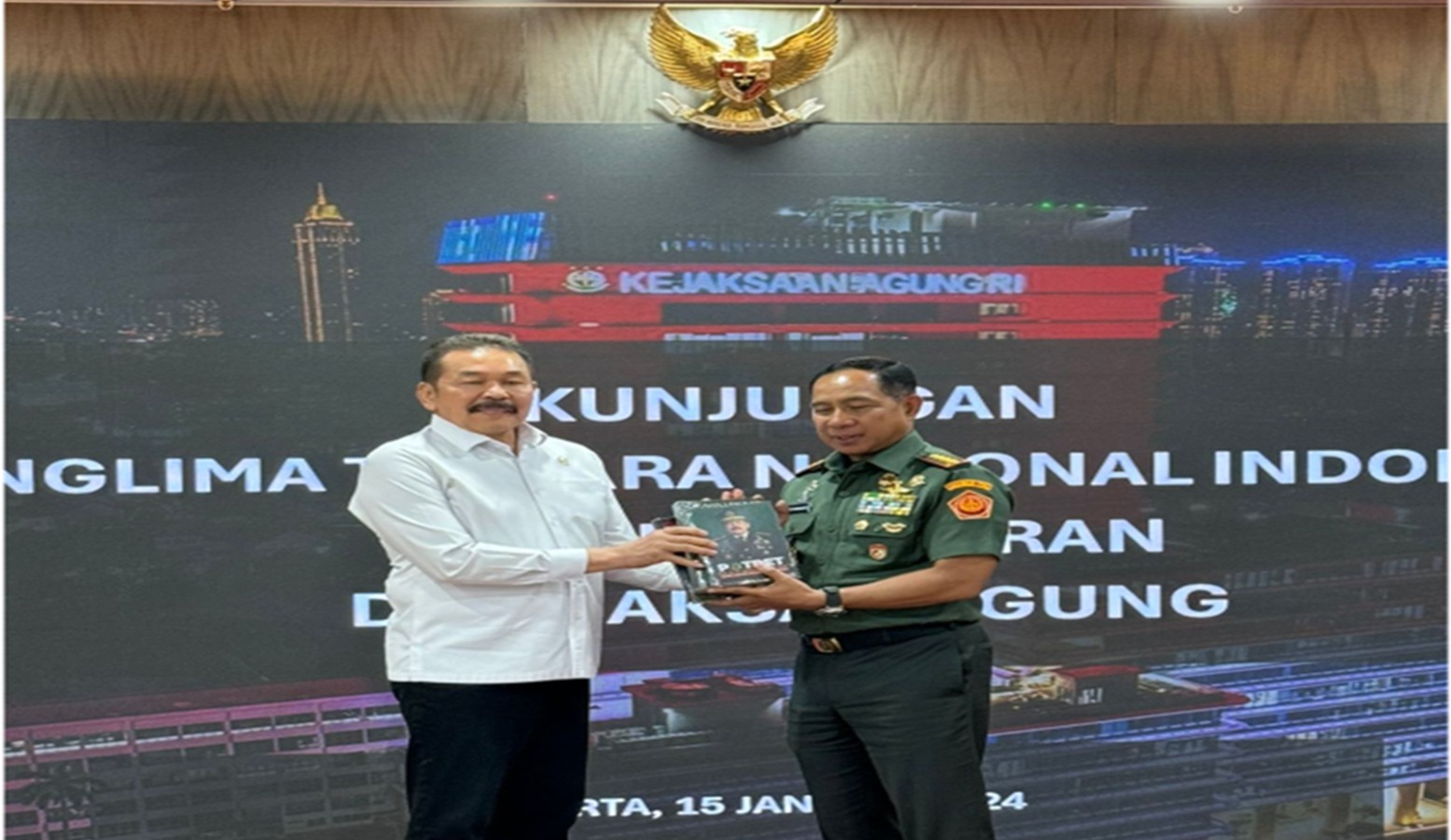 Jaksa Agung ST Burhanuddin beserta jajaran melaksanakan silaturahmi dengan Panglima Tentara Nasional Indonesia (TNI) Jenderal TNI Agus Subiyanto dalam rangka penguatan kelembagaan terutama dalam penegakan hukum. DelikAsia.com, (Jakarta) | Pada Senin 15 Januari 2024 bertempat di Gedung Utama Kejaksaan Agung, Jaksa Agung ST Burhanuddin beserta jajaran melaksanakan silaturahmi dengan Panglima Tentara Nasional Indonesia (TNI) Jenderal TNI Agus Subiyanto dalam rangka penguatan kelembagaan terutama dalam penegakan hukum.