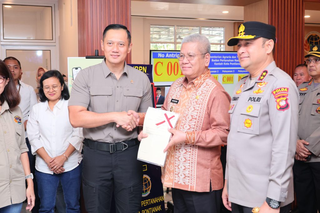 DelikAsia.com, (Pontianak) | Sertipikat tanah bisa meningkatkan nilai ekonomi bagi masyarakat. Demikian dikatakan Menteri Agraria dan Tata Ruang/Kepala Badan Pertanahan Nasional (ATR/BPN), Agus Harimurti Yudhoyono (AHY) saat meninjau Kantor Pertanahan (Kantah) Kota Pontianak, Sabtu (22/06/2024).