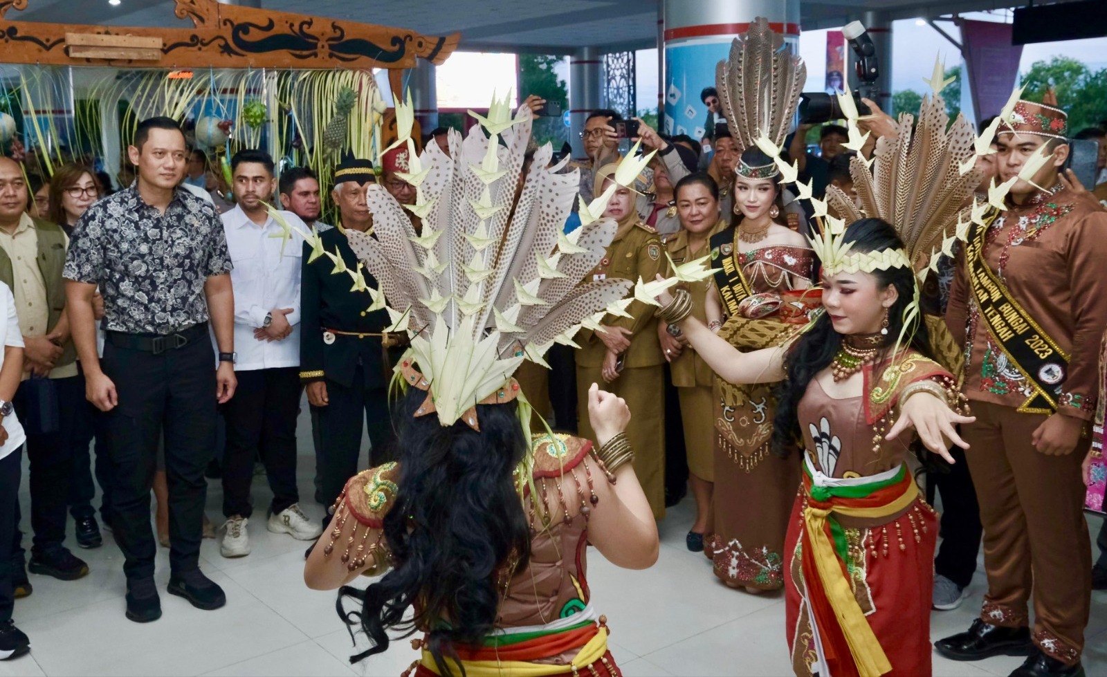 Menteri AHY Disambut Upacara Potong Pantan Diiringi Tarian Tradisional Kalimantan Tengah di Bumi Tambun Bungai