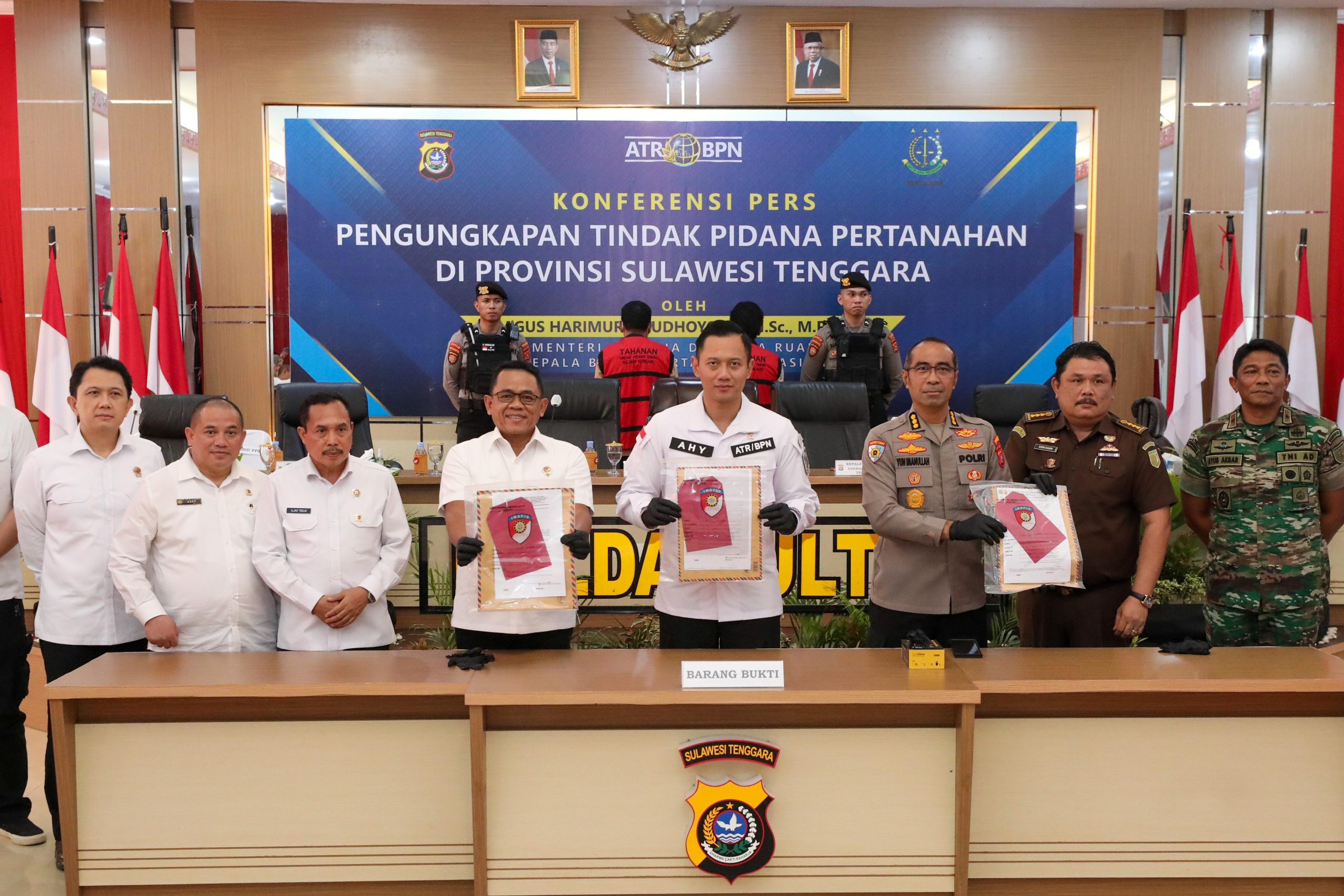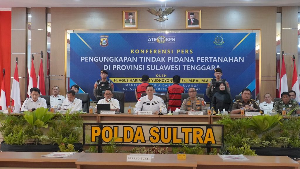 Dalam jumpa pers di Markas Polda Sulawesi Tenggara (26/4), Menteri ATR/Kepala BPN, Agus Harimurti Yudhoyono (AHY) yang didampingi Inspektur Pengawasan Daerah Polda Sultra Kombes Pol. Yun Imanullah, mengungkapkan dua Target Operasi di Sultra yang sudah berstatus P21 dan sudah dilimpahkan ke Kejaksaan dengan jumlah tersangka dua orang.