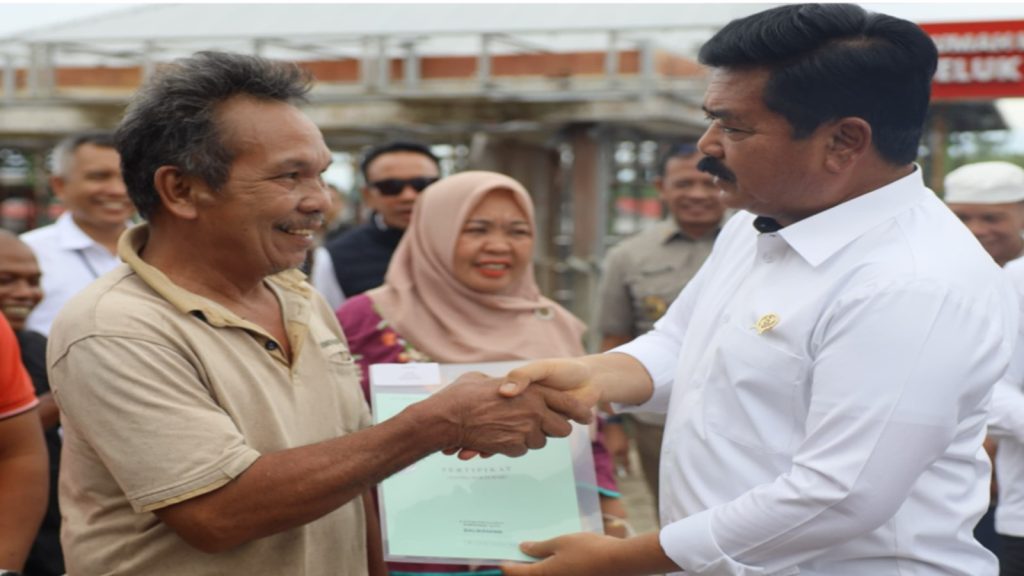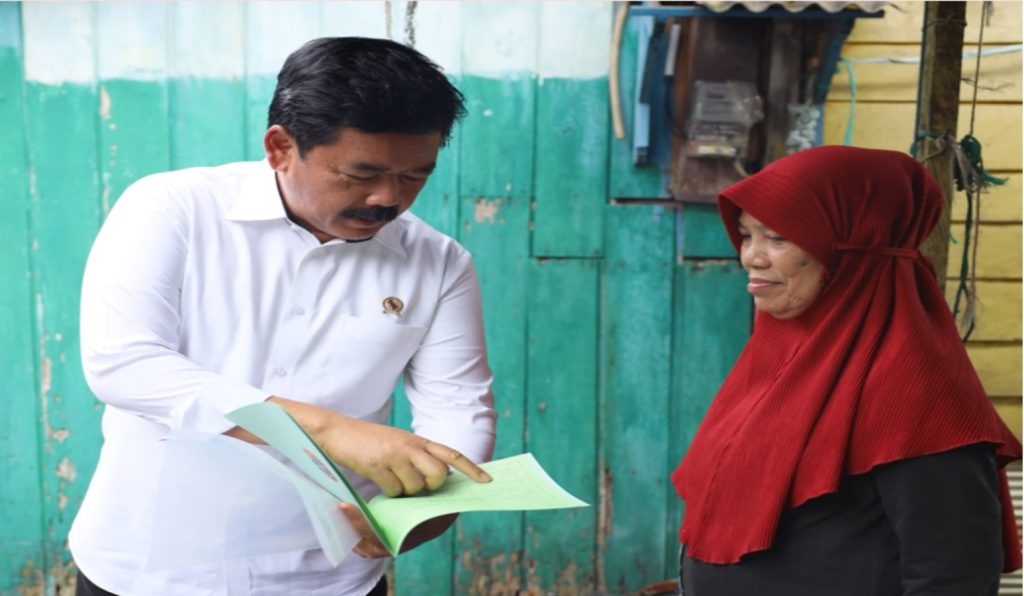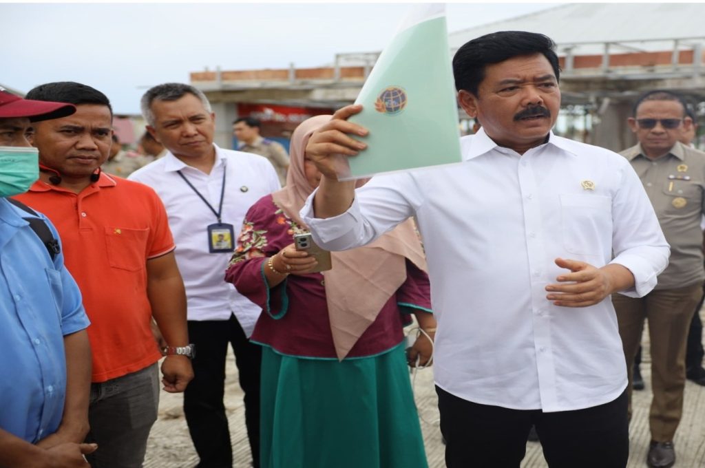 DelikAsia.com, (Balikpapan) |  Menteri Agraria dan Tata Ruang/Kepala Badan Pertanahan Nasional (ATR/BPN), Hadi Tjahjanto menyerahkan 38 Sertipikat Hak Pakai kepada masyarakat di Kelurahan Manggar Baru, Kota Balikpapan, Provinsi Kalimantan Timur, Selasa (16/01/2024). Penyerahan dilakukan secara door to door kepada masyarakat di wilayah yang berada di tepi Pantai Manggar.