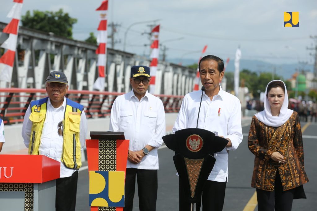 “Kita harapkan dengan jembatan baru ini mobilitas barang dan orang akan semakin terjamin keamanannya, juga kecepatannya,” kata Presiden Jokowi.