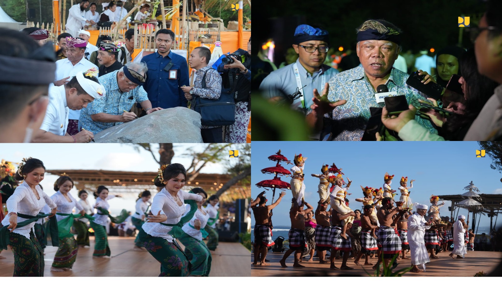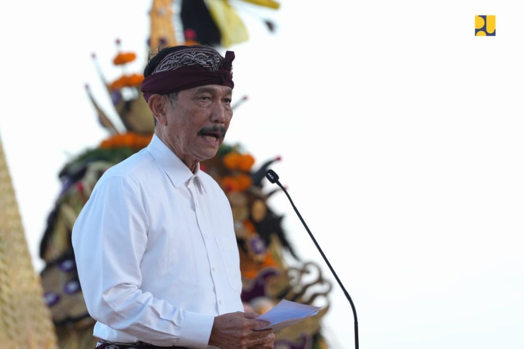 DelikAsia.com, (Bali) |  Menteri Pekerjaan Umum dan Perumahan Rakyat (PUPR) Basuki Hadimuljono bersama Menteri Koordinator Bidang Kemaritiman dan Investasi Luhut Binsar Pandjaitan, Menteri Pendayagunaan Aparatur Negara dan Reformasi Birokrasi (PANRB) Abdullah Azwar Anas, serta Menteri Pariwisata dan Ekonomi Kreatif (Menparekraf) Sandiaga Uno menghadiri Balinese Water Purification Ceremony di Pantai Surf Surf By The Wave, Kawasan Kura Kura Bali, Denpasar, Sabtu (18/5/2024).