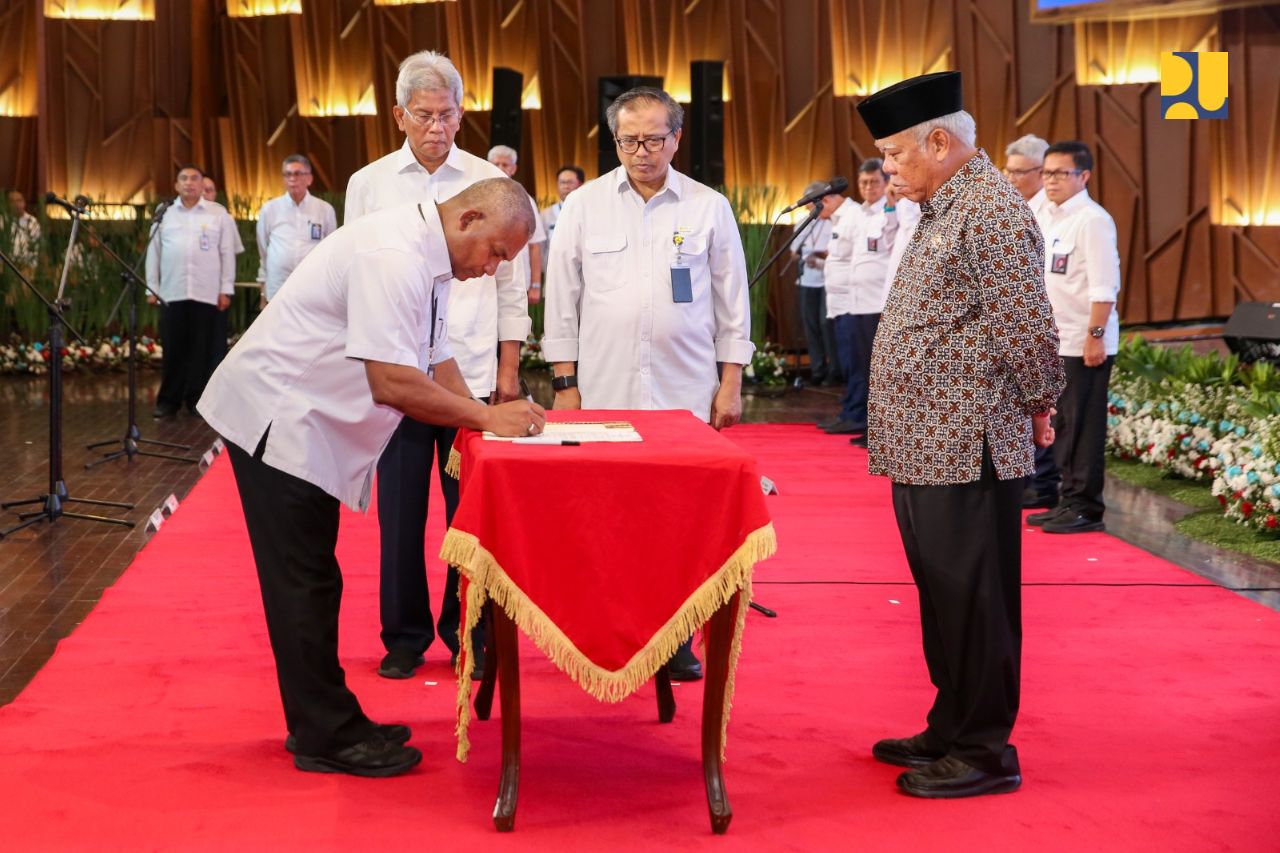 Terus jaga integritas, tidak menyalahgunakan wewenang dan selalu menghindarkan diri dari perbuatan tercela,” imbau Menteri Basuki. Turut hadir Sekretaris Jenderal Mohammad Zainal Fatah, Inspektur Jenderal T. Iskandar, Dirjen Sumber Daya Air Bob Arthur Lombogia, Dirjen Bina Marga Hedy Rahadian, Dirjen Cipta Karya Diana Kusumastuti, Dirjen Perumahan Iwan Suprijanto, Dirjen Bina Konstruksi Rachman Arief, Dirjen Pembiayaan Infrastruktur Pekerjaan Umum dan Perumahan Herry Trisaputra Zuna, Kepala BPSDM Khalawi Abdul Hamid, Kepala BPIW Yudha Mediawan, Staf Ahli Bidang Keterpaduan Pembangunan Maulidya Indah Junica, Staf Ahli Bidang Ekonomi dan Investasi Dadang Rukmana, Staf Ahli Bidang Sosial Budaya dan Peran Masyarakat Abram Elsajaya Barus, Staf Ahli Bidang Hubungan Antar Lembaga K.M. Arsyad, dan Staf Ahli Bidang Teknologi, Industri, dan Lingkungan Endra S. Atmawidjaja.