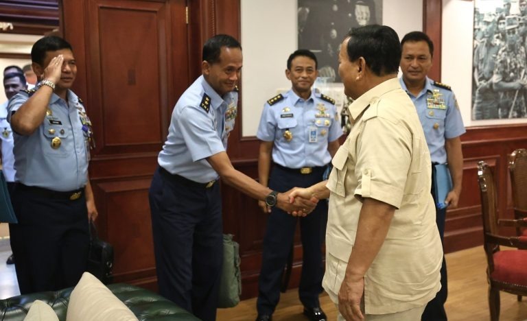 Menteri Pertahanan Prabowo Subianto, saat menerima kunjungan Kepala Staf TNI Angkatan Udara Marsekal TNI Mohamad Tonny Harjono di Kementerian Pertahanan, Jakarta, DelikAsia.com, (Jakarta) | Menteri Pertahanan Republik Indonesia (Menhan RI) Prabowo Subianto menerima kunjungan Kepala Staf TNI Angkatan Udara Marsekal TNI Mohamad Tonny Harjono di Kementerian Pertahanan, Jakarta, Kamis (2/5).